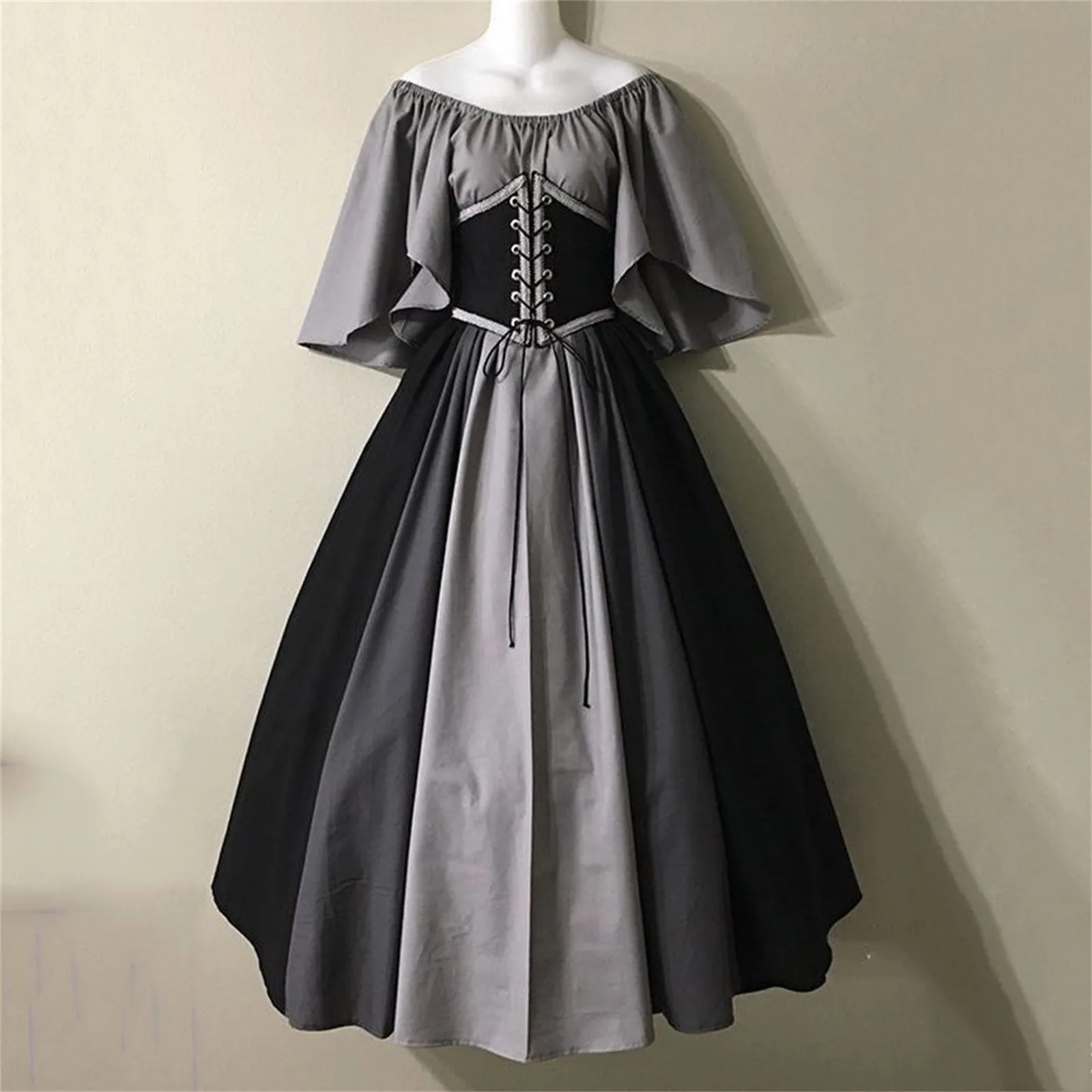 Женское винтажное платье с коротким рукавом, длинное платье в стиле пэчворк со шнуровкой, размеры до 5xl, платья для косплея королевы викторианской принцессы