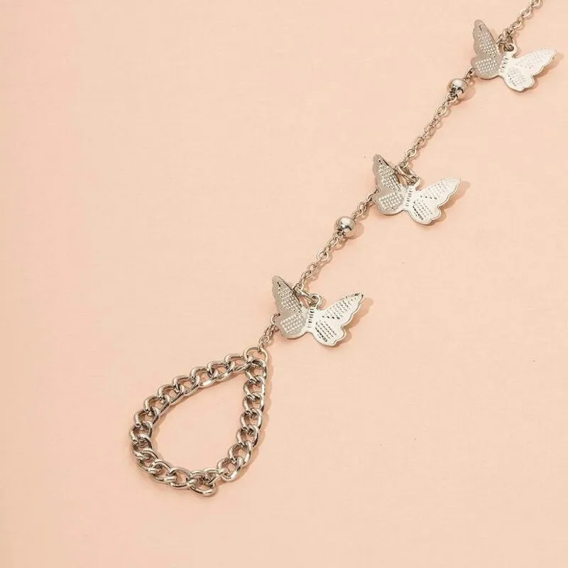 Винтажный браслет с бабочкой и кольцом на палец, золотая цепочка с шармами на запястье для женщин браслет, соединенный с кольцом на пальце 2021, модные эстетические ювелирные изделия