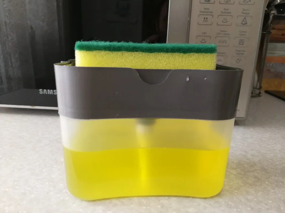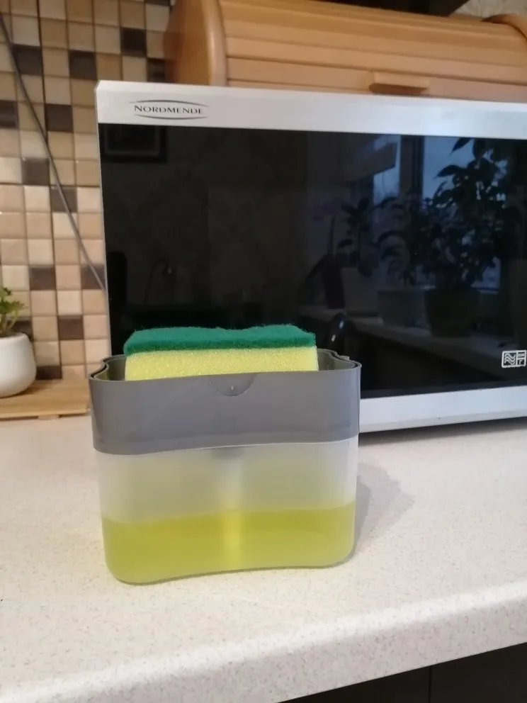 Очень вместительный диспенсер, доставка месяц до Архангельской области, пришёл хорошо упакованный, целый, губка в подарок, спасибо продавцу .