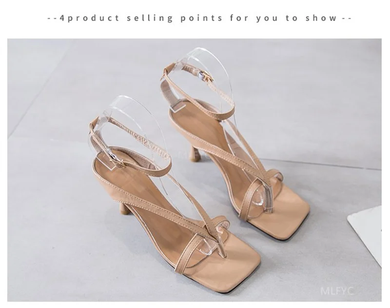 Женские сандалии с открытым носком, универсальные римские шлепанцы на высоком каблуке-шпильке, квадратный носок, новая модель