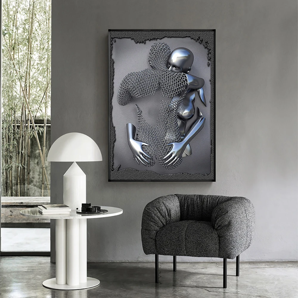 3D визуальные золотые серебряные настенные картины металлические современные скандинавские персонализированные картины на холсте для интерьера домашний декор
