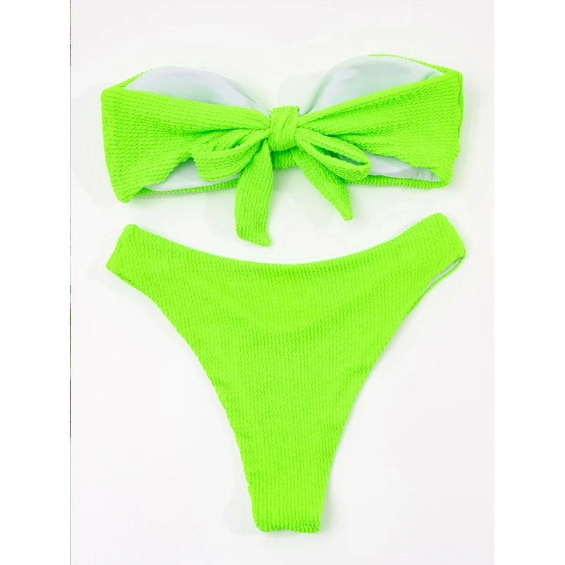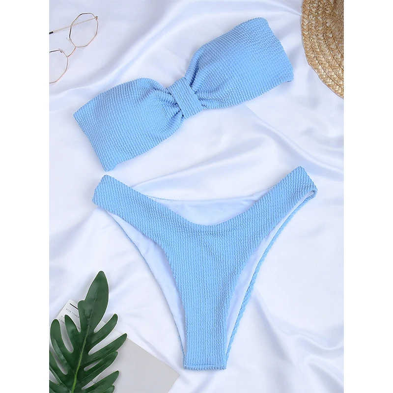 Однотонный комплект бикини Peachtan, сексуальный купальник с открытыми плечами, женский купальный костюм с высоким вырезом, комплект бикини, женские костюмы для купания