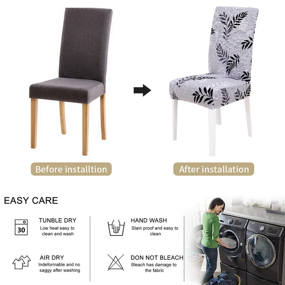 Особенности:Удивительный Материал: изготовлен из полиэстера и спандекса, мягкий и удобный для сидения, не скатывается.Простая установка: легко установить крышку на стул из-за высокоэластичного материала. Также очень легко снять его со стула.Защита: толщина может защитить ваш стул от молочной пыли или царапин, прочный и долговечный.Обновление старого стула: если вы хотите обновить внешний вид стула, это будет идеальным выбором для стула, а также станет прекрасным украшением вашего дома, комнаты.Легкий уход: Машинная или ручная стирка.