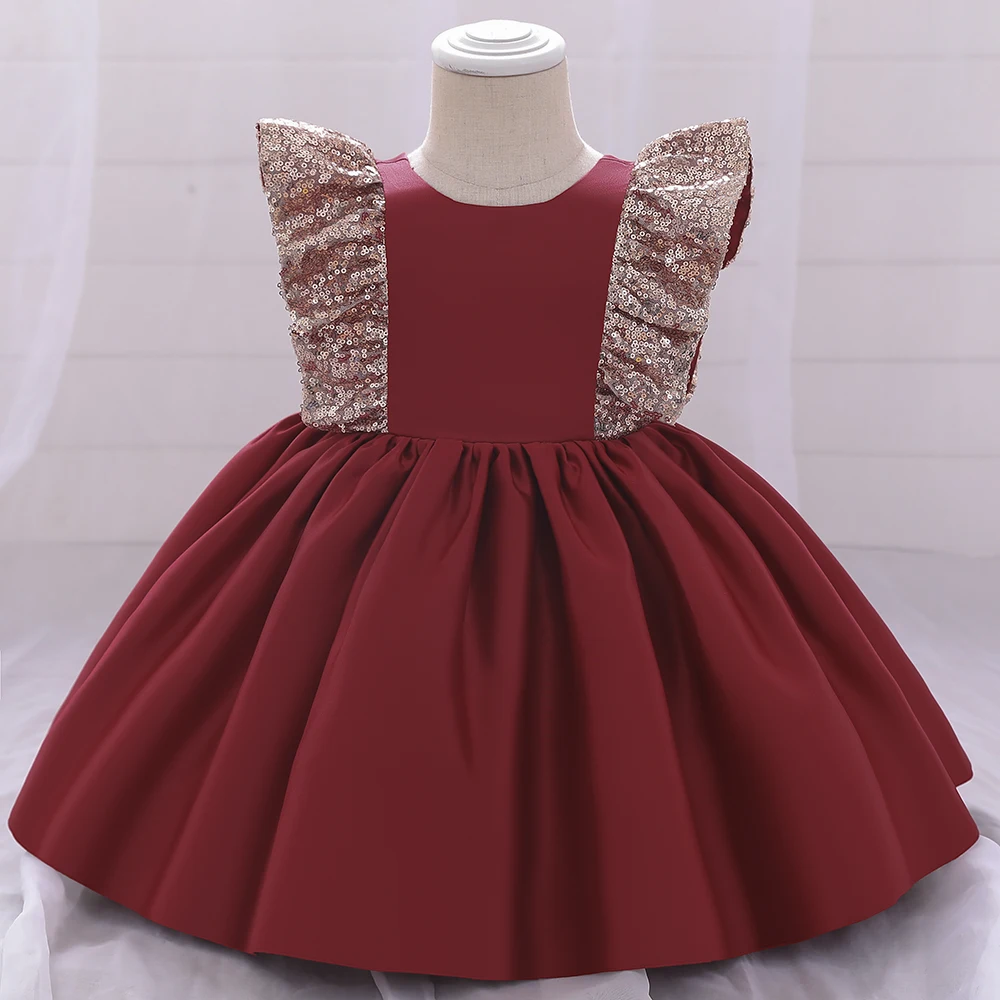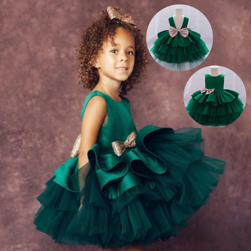 Рождественское детское платье для девочек, платья для первого дня рождения, свадебной вечеринки, бальное платье принцессы с блестками и бантом для малышей, тюлевое бальное платье, детская одежда