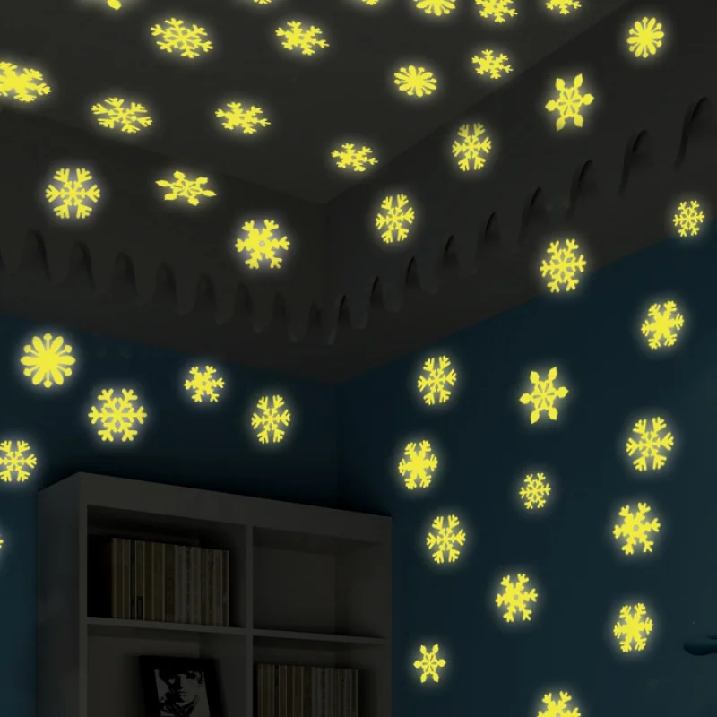 1. Пожалуйста, дайте снежине впитывать Солнечный свет или светодиодный свет достаточно времени.2. Пожалуйста, выключите все источники света, чтобы в комнате было достаточно темно!3. Пожалуйста, не наносите снежинки на окно, мы предлагаем вам наклеить их на темный потолок и стену.