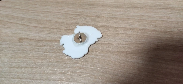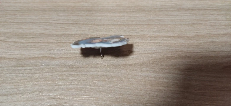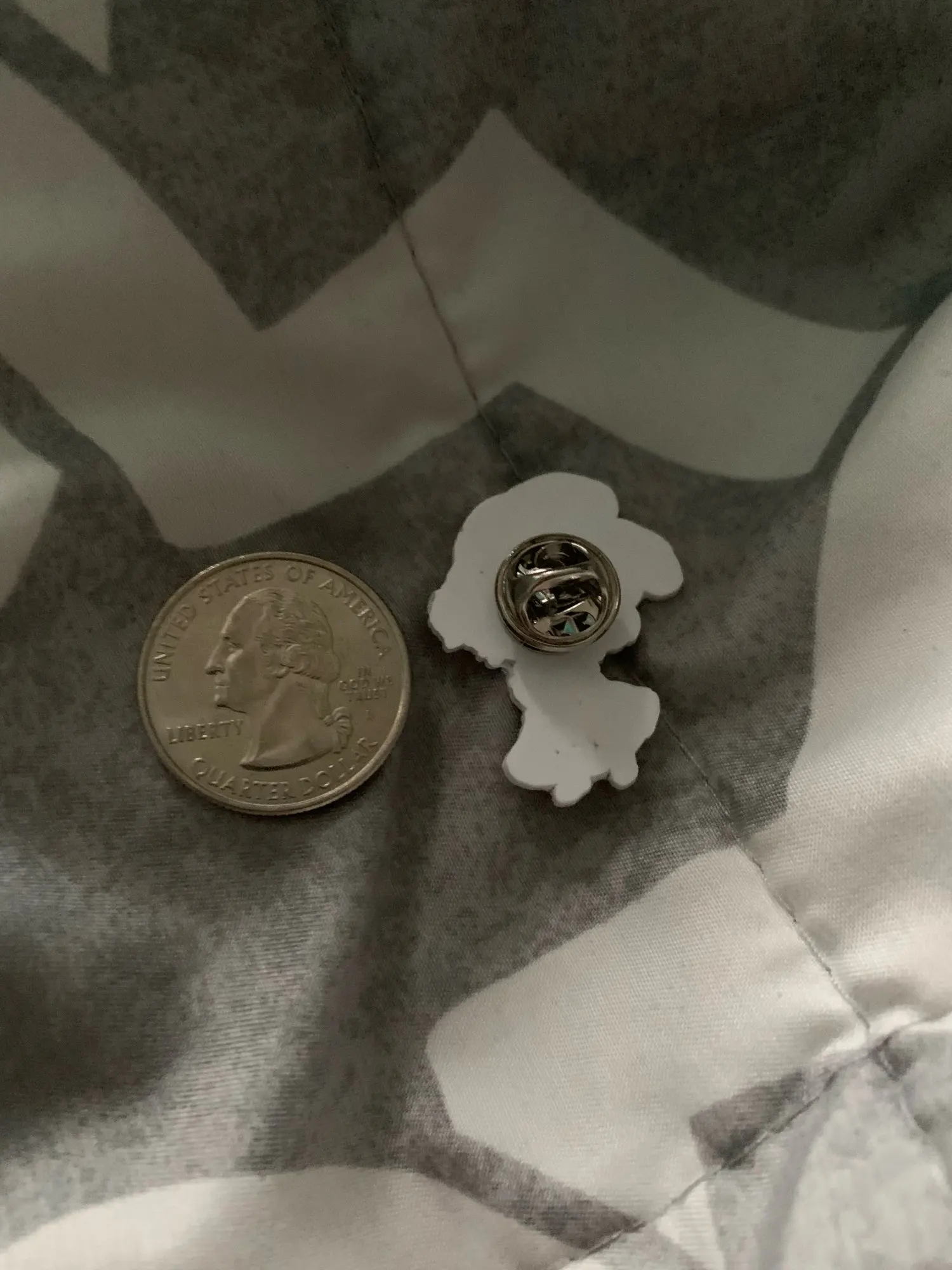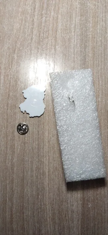 к сожалению, пин пришел сломанным: принт отклеен от иглы, а сама игла согнута. пришлось самому чинить, все же было не очень приятно распаковывать брак. радует то, что остальные пины, купленные в этом магазине, пришли целыми, качество картинки хорошее, крепление тоже (две последние фотографии - результаты починки, удивительно, но после плоскогубцев крепление все еще работает)