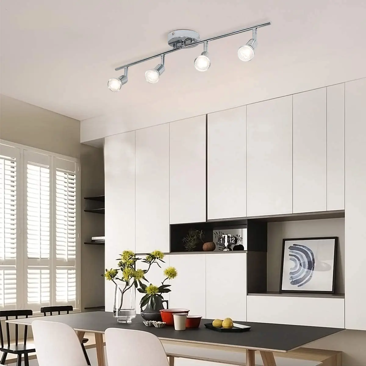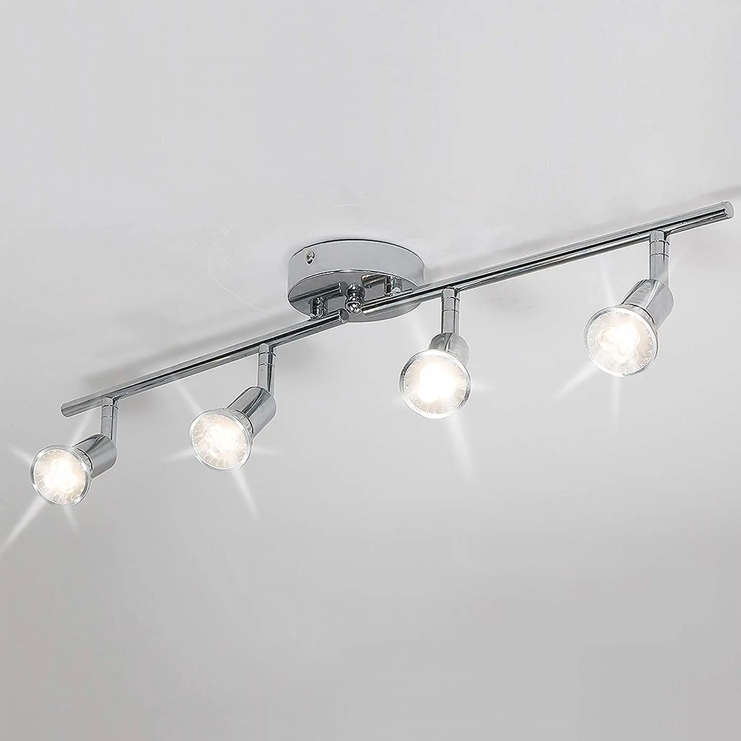 Современный 4-осветительный Трековый светильник, приспособление для настенныхфотоламп, светодиодный Трековый светильник, хромированная Вращающаяся головка света, лампа 4GU10 (в комплекте