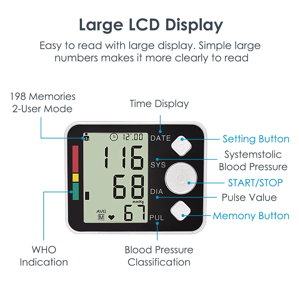 Бытовой электронный наручный Сфигмоманометр Автоматический цифровой прибор для измерения кровяного давления умный Сфигмоманометр без голоса без подсветки двухпользовательское оборудование для измерения сердечного ритма портативное