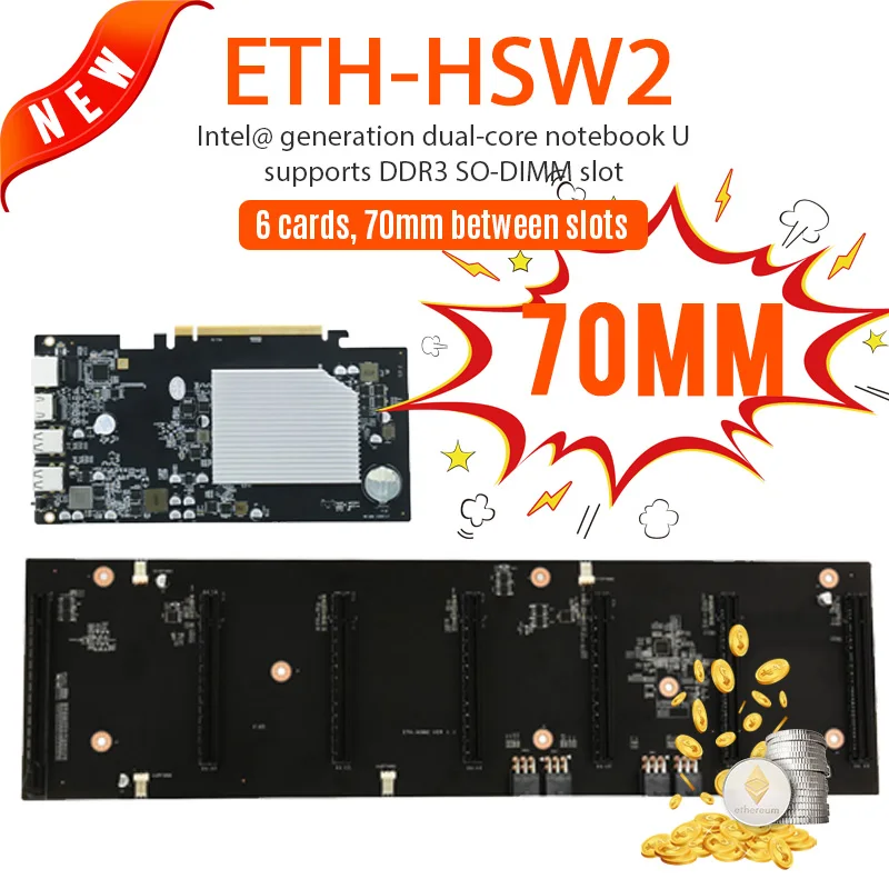 Материнская плата для майнинга ETH-HSW2 6 GPU (расстояние 70 мм) Поддержка DDR3 PCIEX16 графическая видеокарта для майнинга