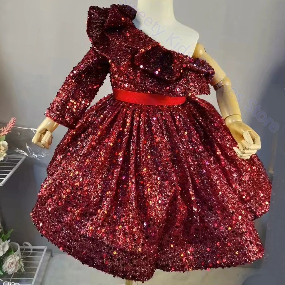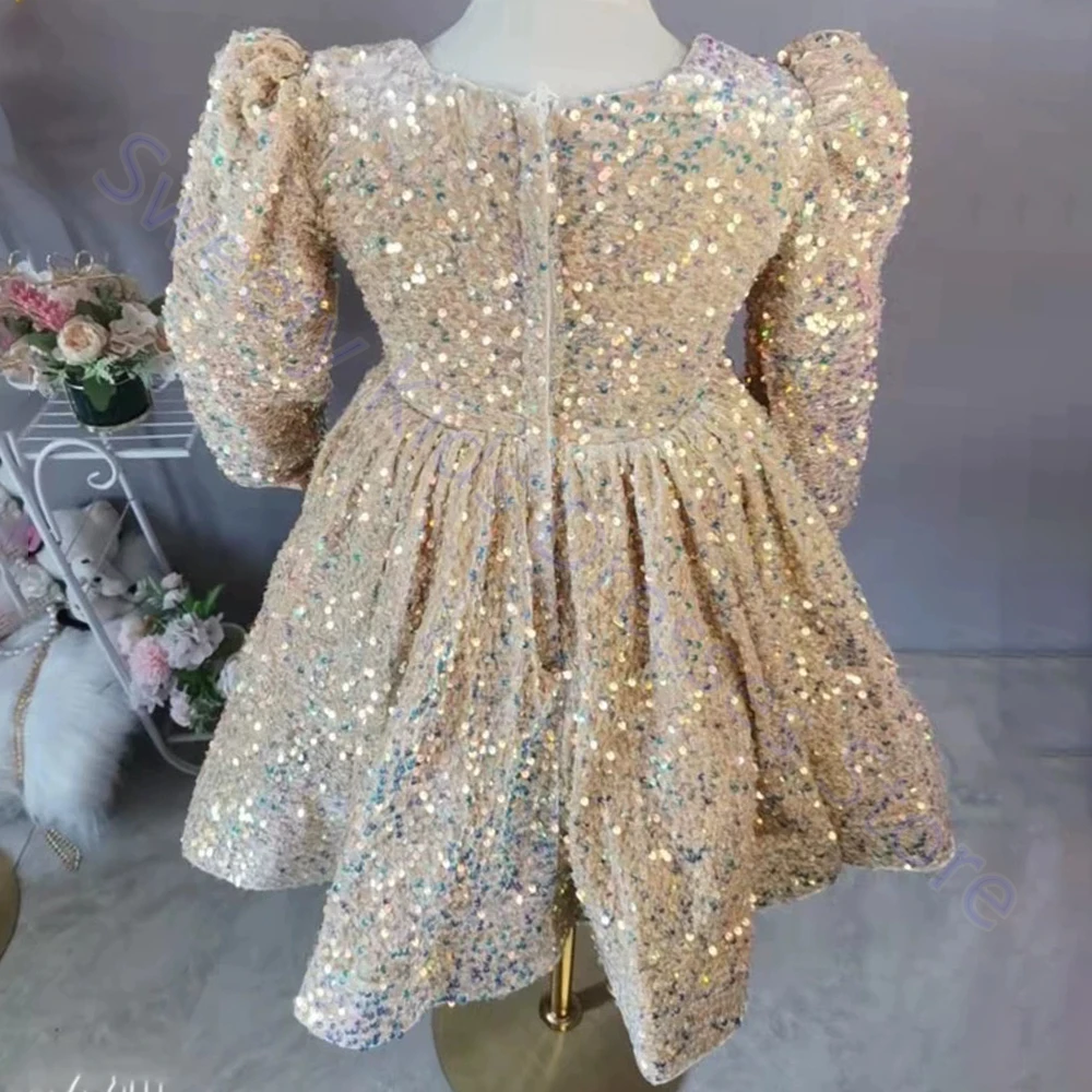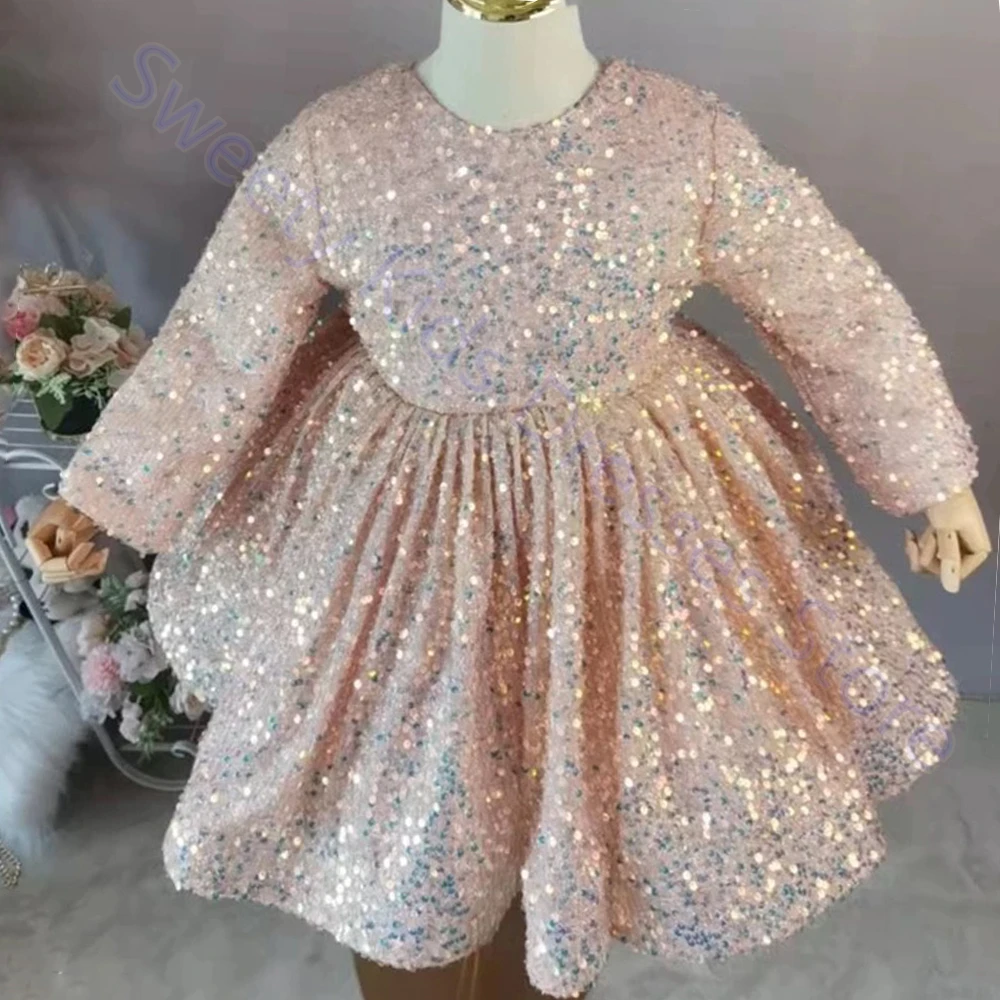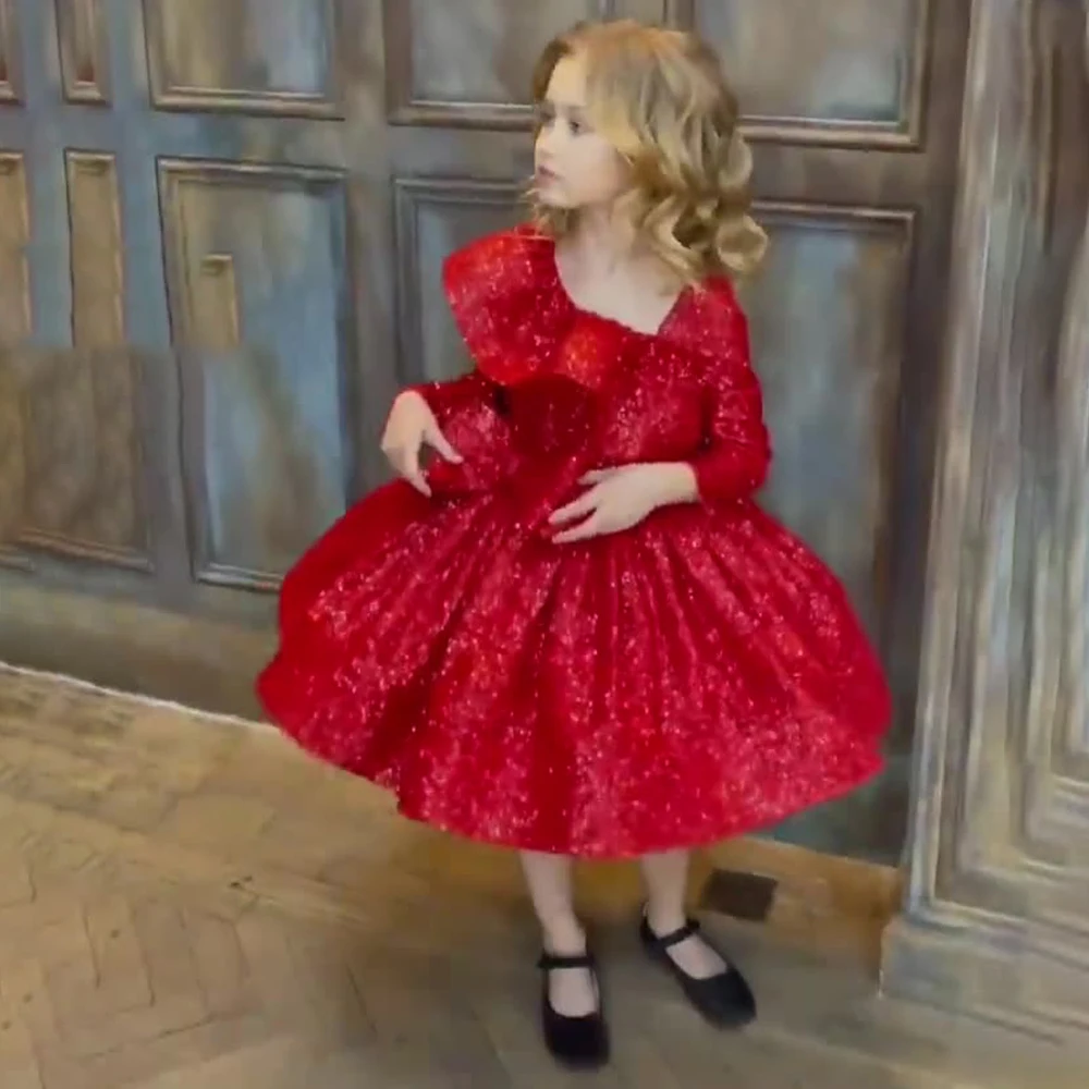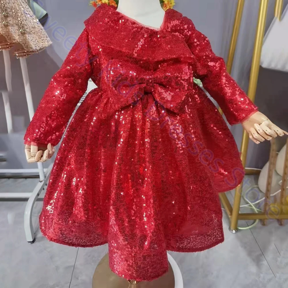 Официальное Платье для подружек невесты с блестками на 1 год, платье для маленьких девочек на день рождения, элегантное платье с пушистым бантом для вечерние ринки, свадьбы, платья принцессы для крещения, костюмы