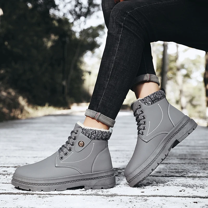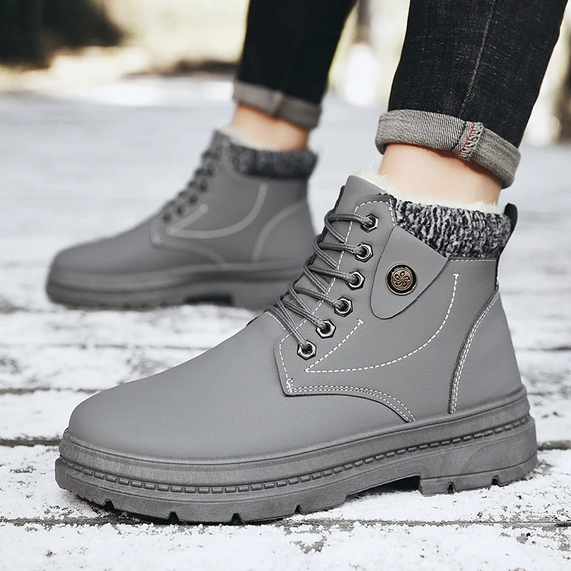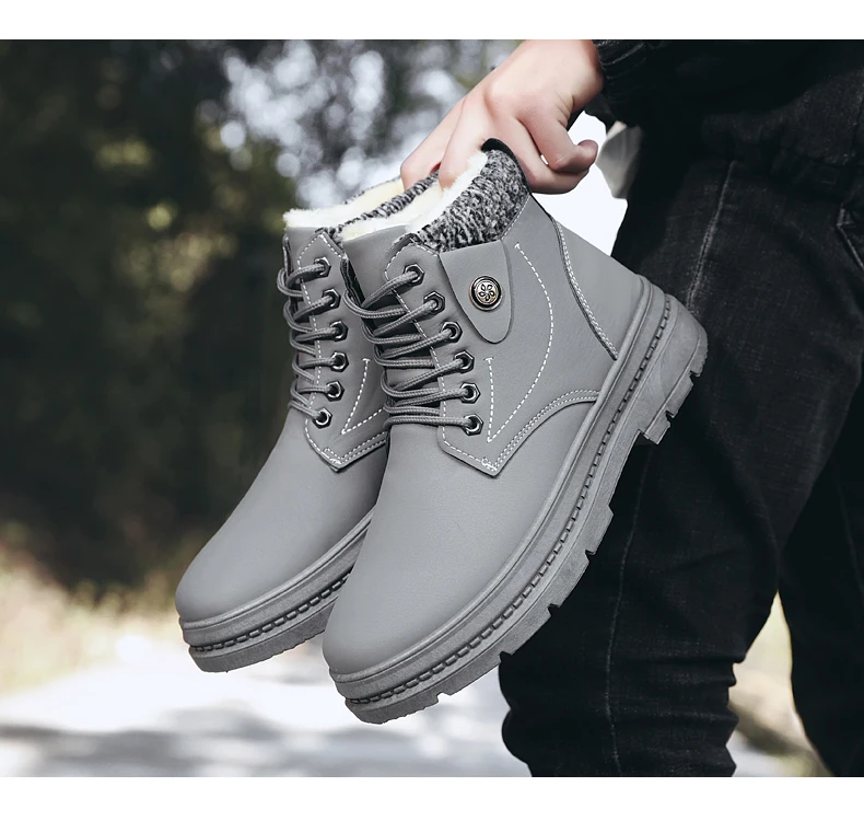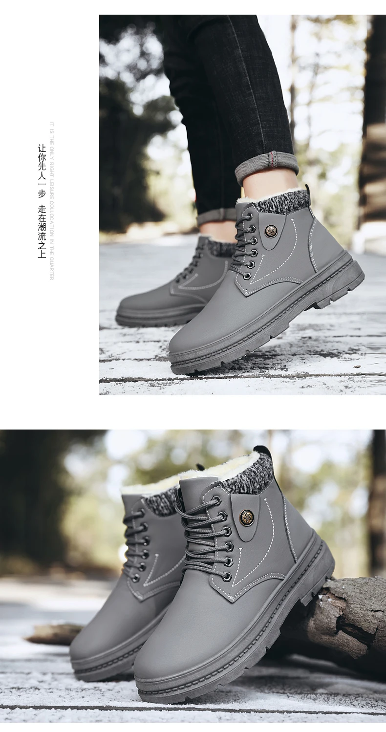 Водонепроницаемые зимние ботинки, мужские ботинки, кожаные плюшевые...