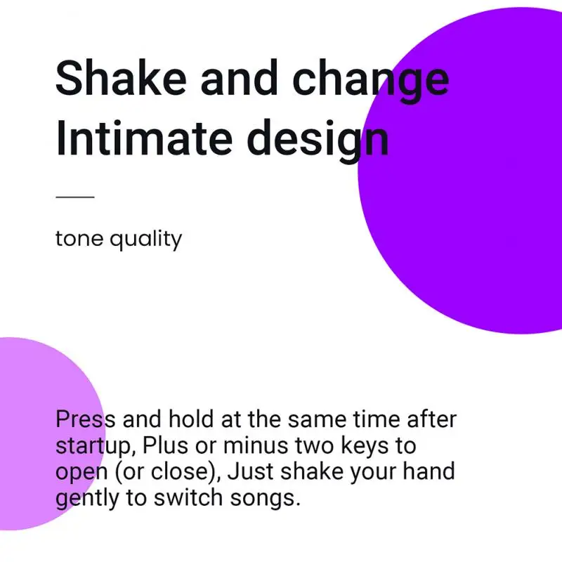 Встряхните, чтобы изменить функцию воспроизведения музыки: после загрузки вам нужно одновременно нажать и удерживать кнопку «громкость Плюс» и «минус», чтобы включить (или выключить)