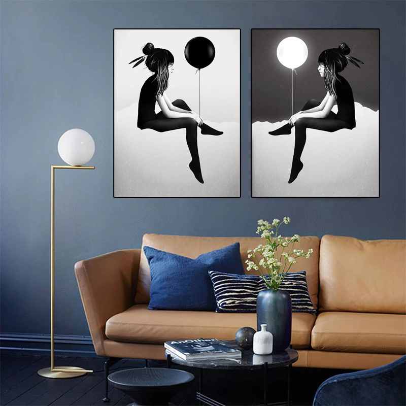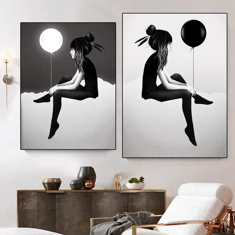 Абстрактная Голая девушка воздушный шар Холст Картина черная белая фотография стены нордическая гостиная украшение для дома