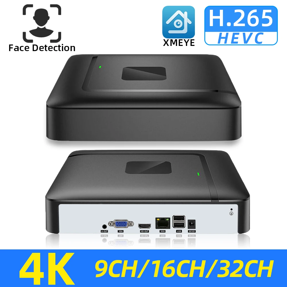 Обнаружение лица H.265 Max 4K CCTV NVR 9/16/32CH 4K/5MP/2MP охранный видеорегистратор Обнаружение движения P2P XMEYE NVR для POE камеры