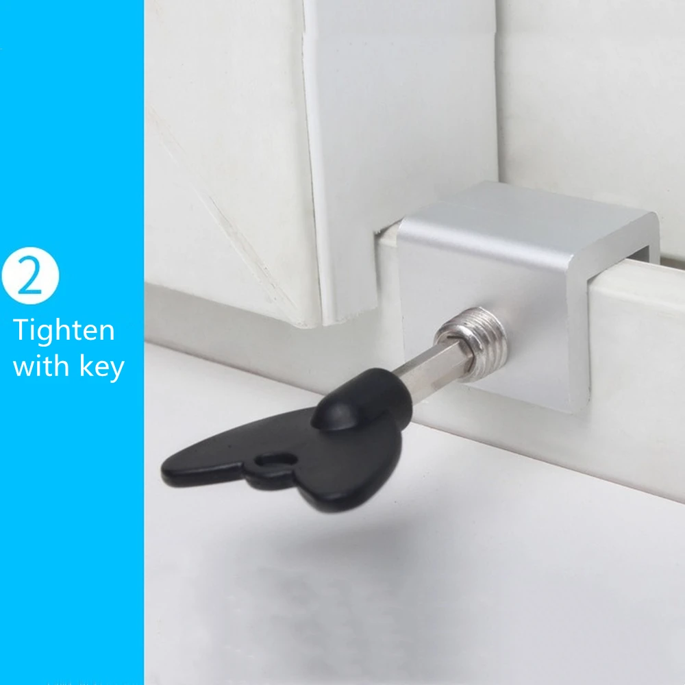 Регулируемые раздвижные оконные замки для защиты от детей, блокировка из алюминиевого сплава с ключами