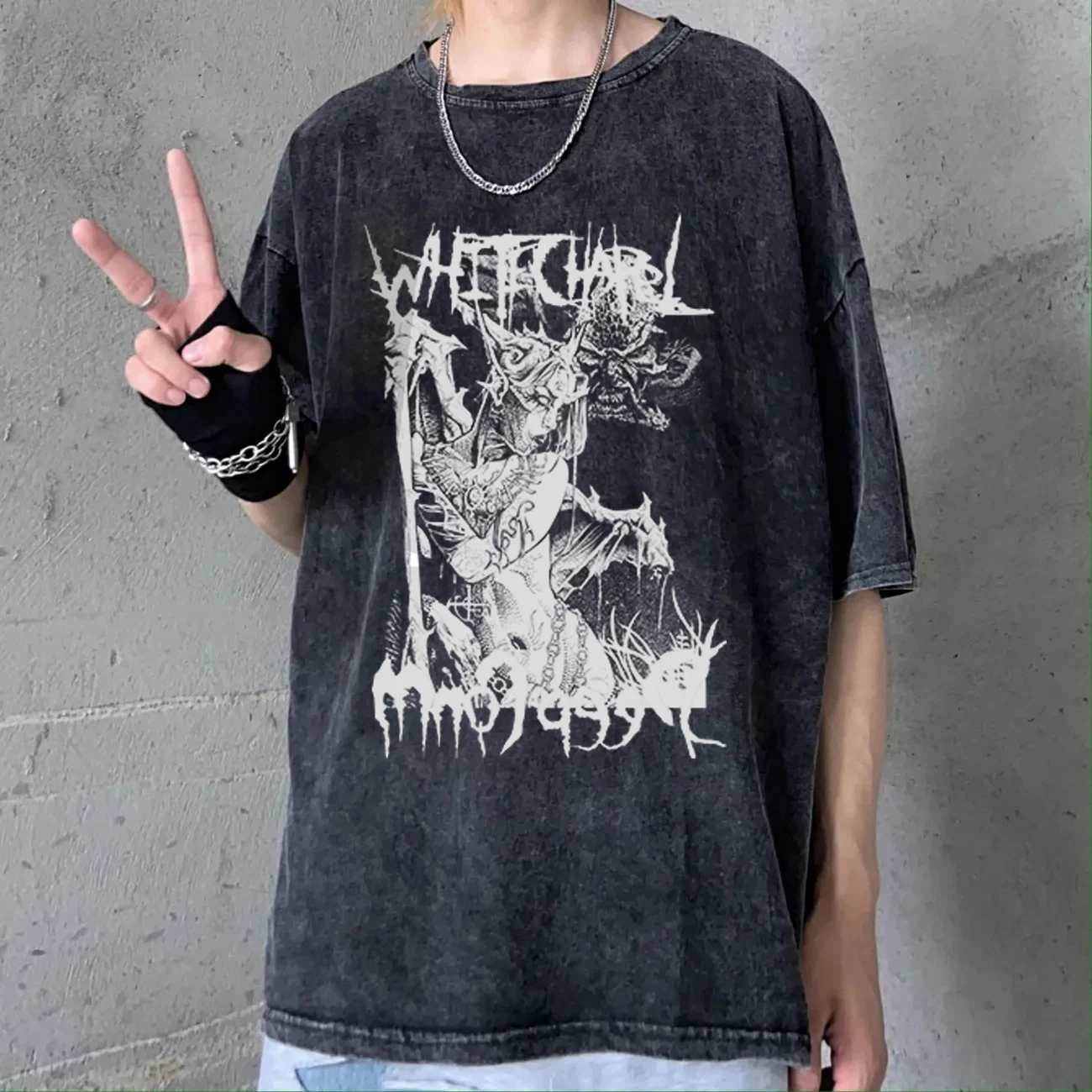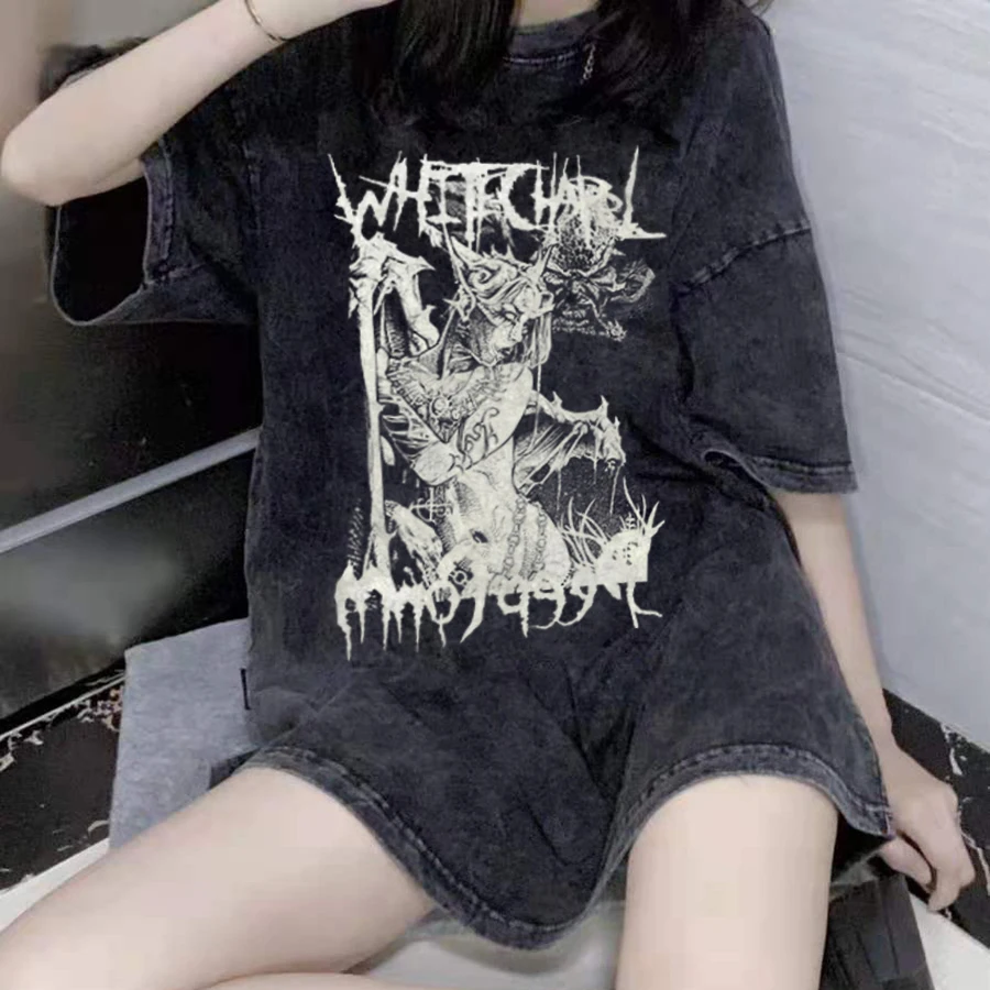 Женская футболка в стиле Харадзюку, черная футболка с рисунком эмо из аниме и готических мотивов, летний топ большого размера в стиле Харадзюку