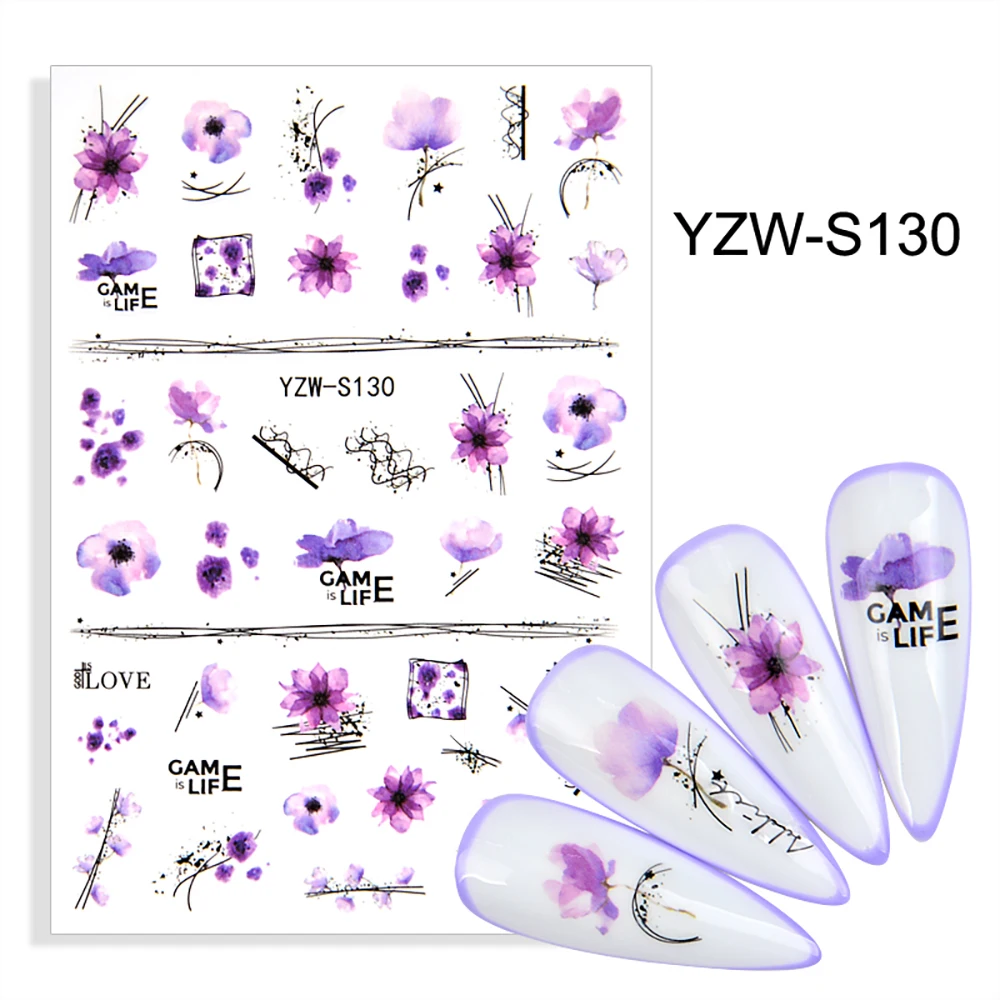 Самоклеящиеся 3D-Наклейки для ногтей, фиолетовая лаванда, переводны...