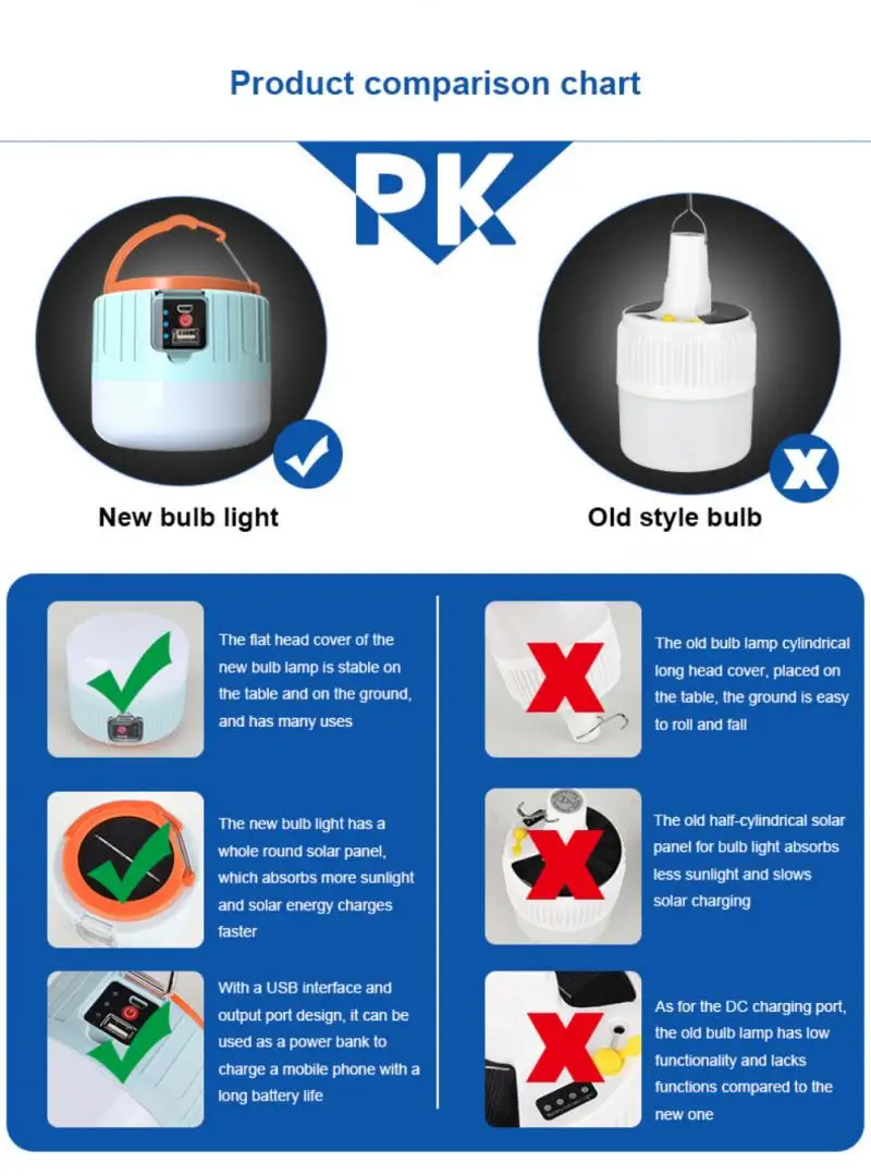 6. Зарядка солнечной энергии, нулевая зарядка электричества, отлично! Простота в применении: светодиодный светильник на солнечной батарее легко переносится и может переноситься с собой без аккумулятора