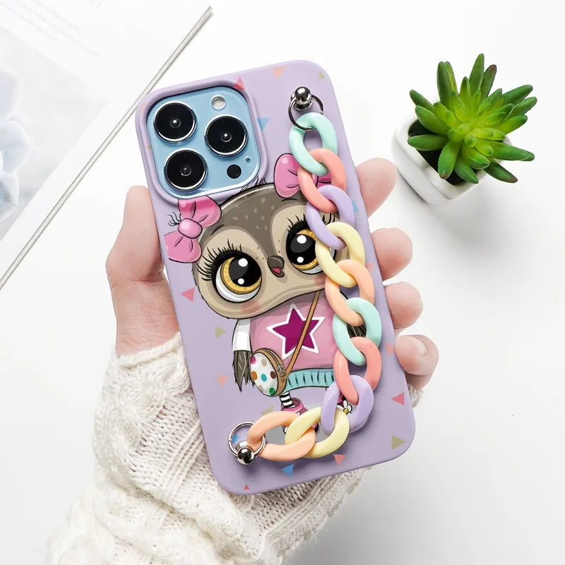 Чехол с совой для Samsung Galaxy A52 A72 A32 A22 A12 A10 A21S A31 A40 A50 A51 A72 S8 S9 S10 S20 FE S21 Ultra Plus, чехол с цепочкой на запястье