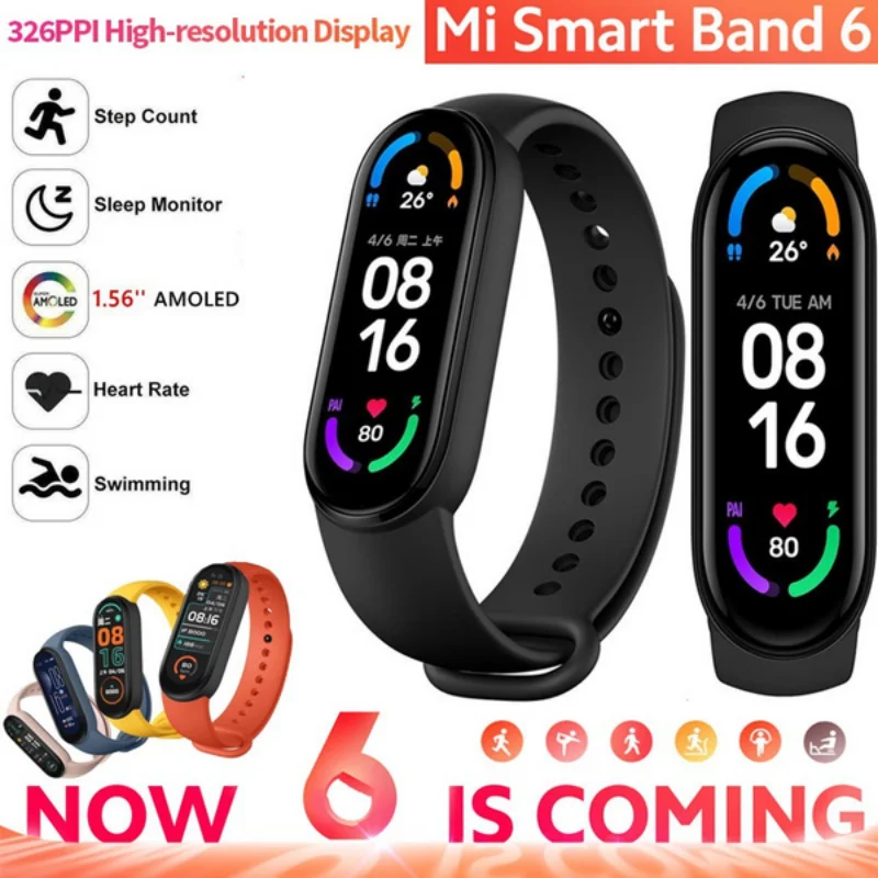 Смарт-часы MI Band 6, цветные мини-часы для фитнеса, влагозащита IP...