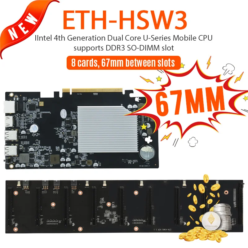 Набор материнской платы для майнинга 8 GPU(67 мм) с ЦП, криптовалютериум, Биткоин, экспертная плата для майнинга без резервов, Майнер Gigabit для BTCETHZEC