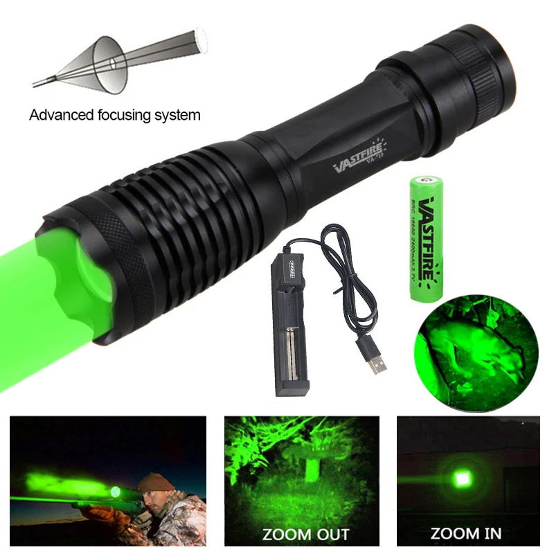 Светодиодный охотничий фонарик зеленогоКрасногобелого цвета, масштабируемый тактический фонарь для кемпинга, аккумулятор 18650 с креплением для прицела
