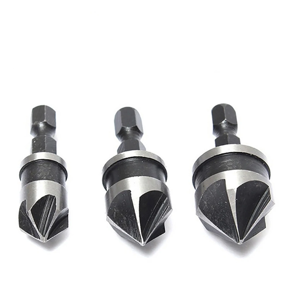 3 шт., шестигранная Зенковка для дерева, металла, Быстросменные сверла, инструменты, 3 шт., шестигранный хвостовик, углеродистая сталь