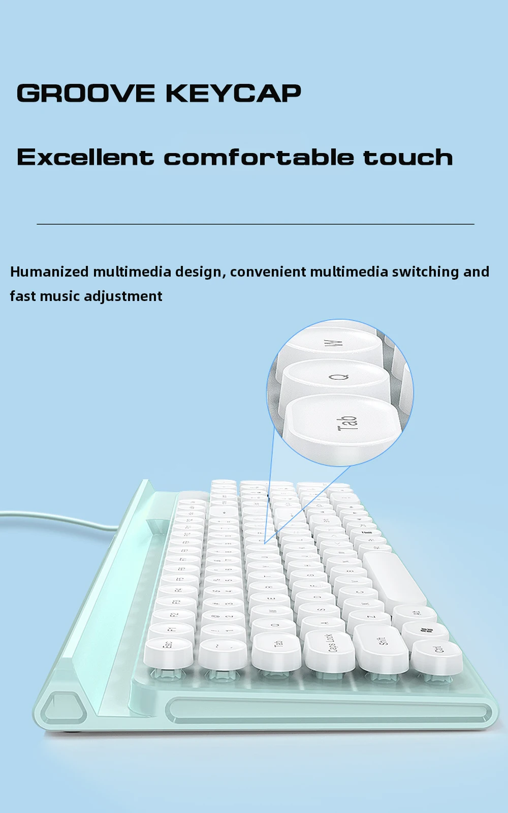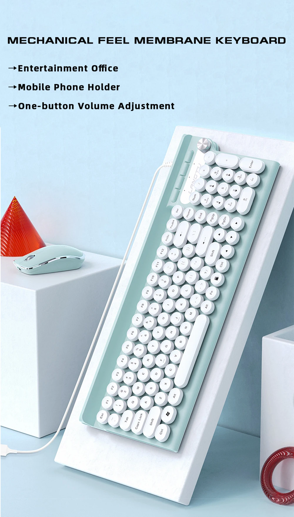 EAOR 102-клавишная USB-проводная клавиатура Ультратонкая беззвучная водонепроницаемая клавиатура с подставкой для телефона Ретро-игровая офисная клавиатура для портативных ПК