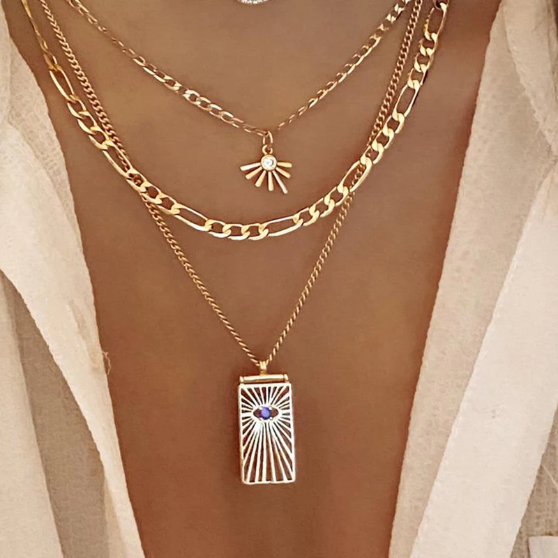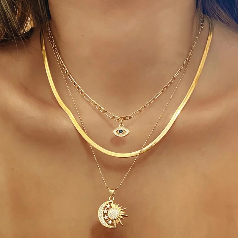 Ожерелье женское из цепочки до ключиц и кулона сглаза с покрытием из 18-каратного золота