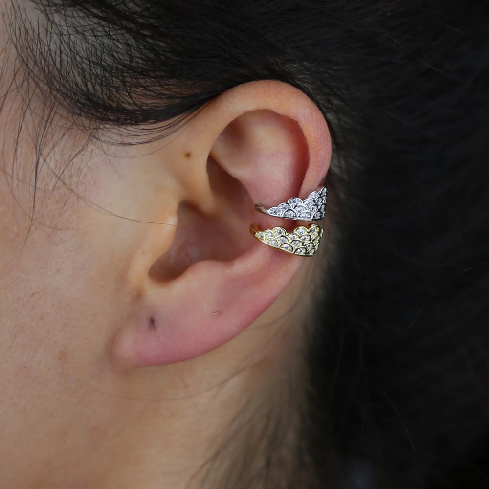 Распродажа, 1 шт., Роскошный Клип-серьги в стиле бохо, ювелирные изделия для женщин, золотой, серебряный цвет, Геометрическая Корона, форма, серьги-манжеты, выложенные 5A cz