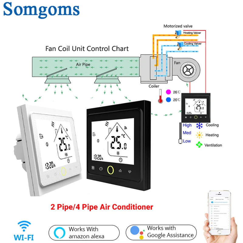 WiFi центральный кондиционер термостат регулятор температуры 2 трубы 4 трубы 3 скорости Вентилятор катушка блок работает с Alexa Google Home