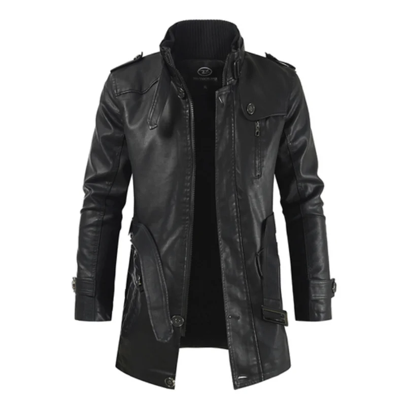 Новинка Зима 2020, мужская кожаная куртка средней длины с воротником-стойкой, бархатная куртка из искусственной кожи большого размера