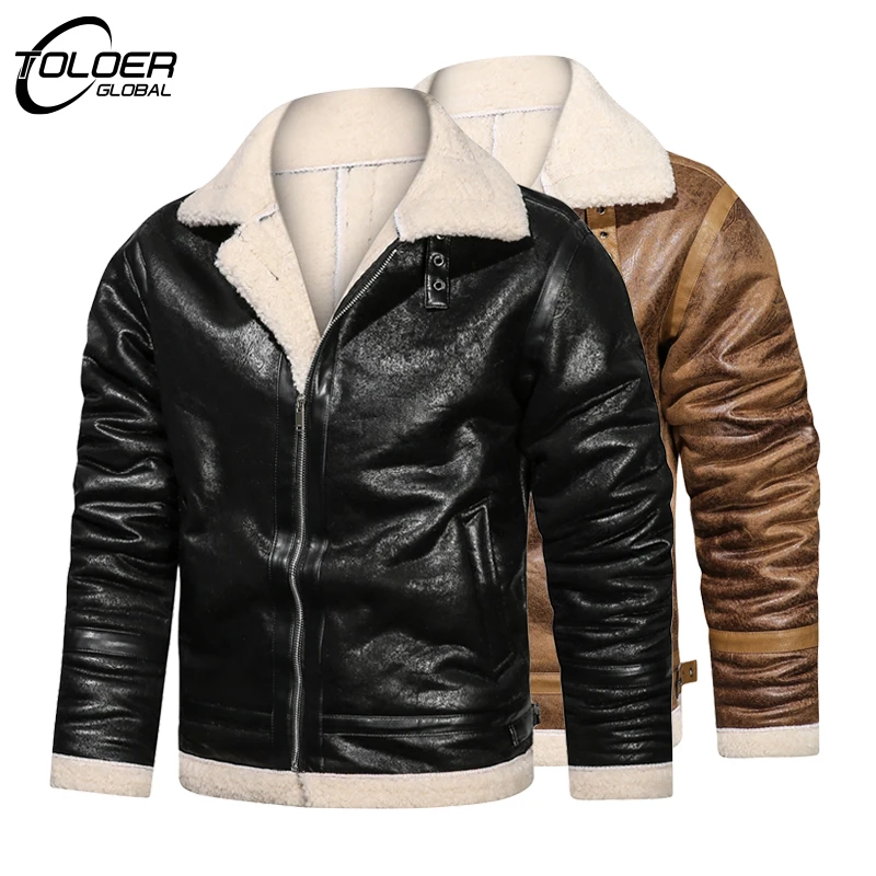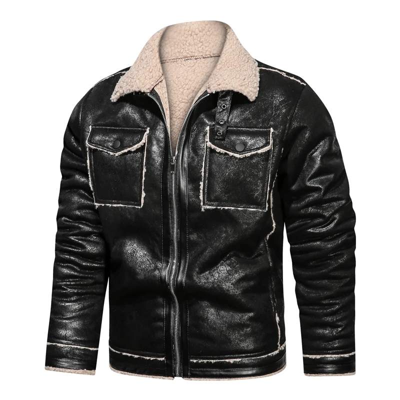 Мужская Зимняя коллекция 2022, флисовая Толстая кожаная куртка, Мотоциклетные Куртки из искусственной кожи с мехом, модные мужские зимние пальто с лацканами