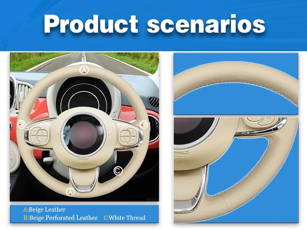 Бежевая искусственная кожа ручная строчка для Fiat 500 2015-2021 500C 2016 2017 2018 2019 2020