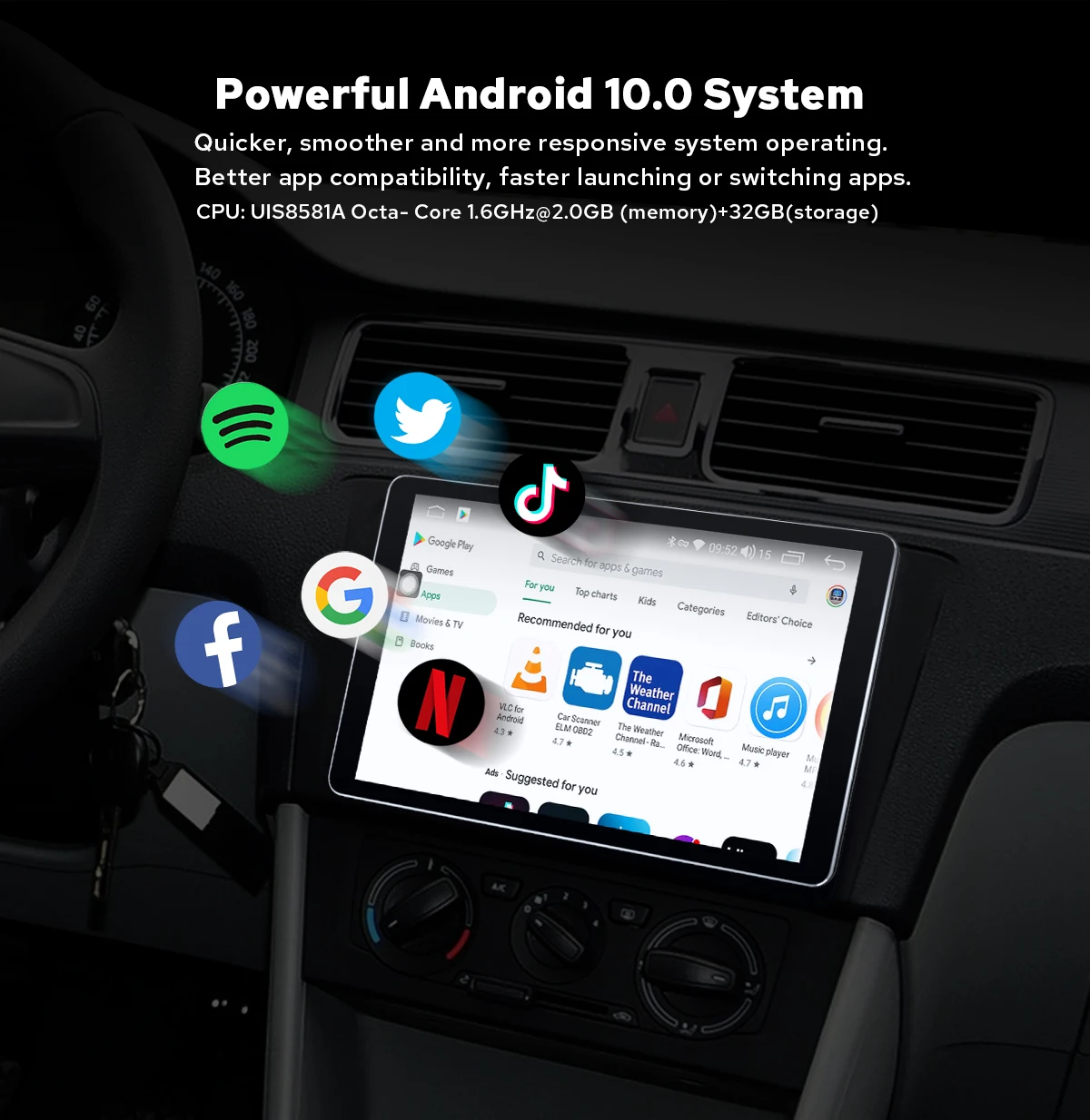 1. Совместимость с Android 10,0, UIS8581A восьми-ядерный 1,6 ГГц двухъядерный 8 дюймов 1 din 1280*800 ulter-тонкий Экран2. Супер аппаратная производительность, 2 Гб RAM + 32 ГБ ROM Octa Core3. Интернет-развлечения4. Поддержка Google Play Store, вы можете скачать множество приложений5. Поддержка обратной камеры aftermarket/DVR/OBD2/DAB +/TPMS, вам нужно купить отдельно6. Поддержка быстрой загрузки, быстрое включение радио7. Поддержка кнопок управления рулевым колесом (без Canbus автомобиля)8. Bluetooth для handfree, Синхронизация Bluetooth телефонной книги9. Встроенный DSP, делает радио лучше звук и более Регулируемый эквалайзерНовый JOYING блок теперь поставляется с SPDIF цифровой аудио. Для максимального качества звука вы можете напрямую подключить внешний усилитель/DSP к цифровому выходу SPDIF; Если ваш внешний усилитель/DSP не поставляется с входом SPDIF, вам нужно будет подключить усилитель/DSP через FL/FR out & RL/RR out.