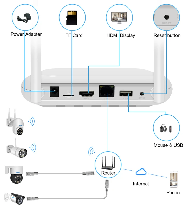 Видеорегистратор SMAR сетевой 8-канальный с поддержкой Wi-Fi и камеры 5 Мп3 Мп