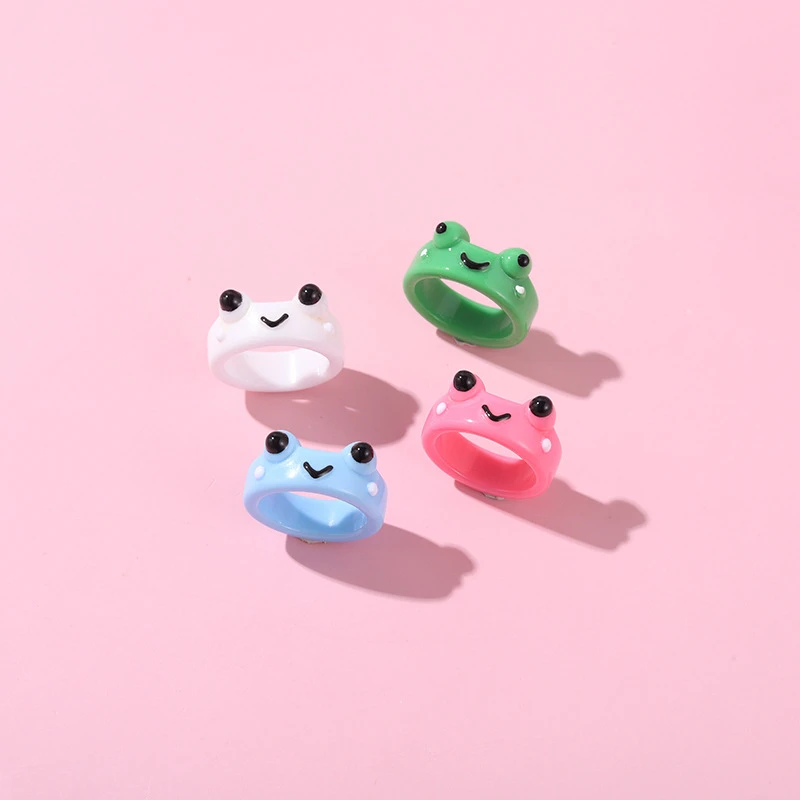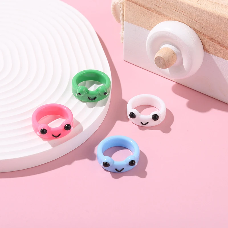 Новое поступление, кольцо с симпатичной лягушкой, простое эстетическое ювелирное изделие с животными, кольца дружбы для женщин и девушек, однотонное акриловое искусственное кольцо