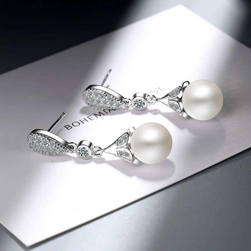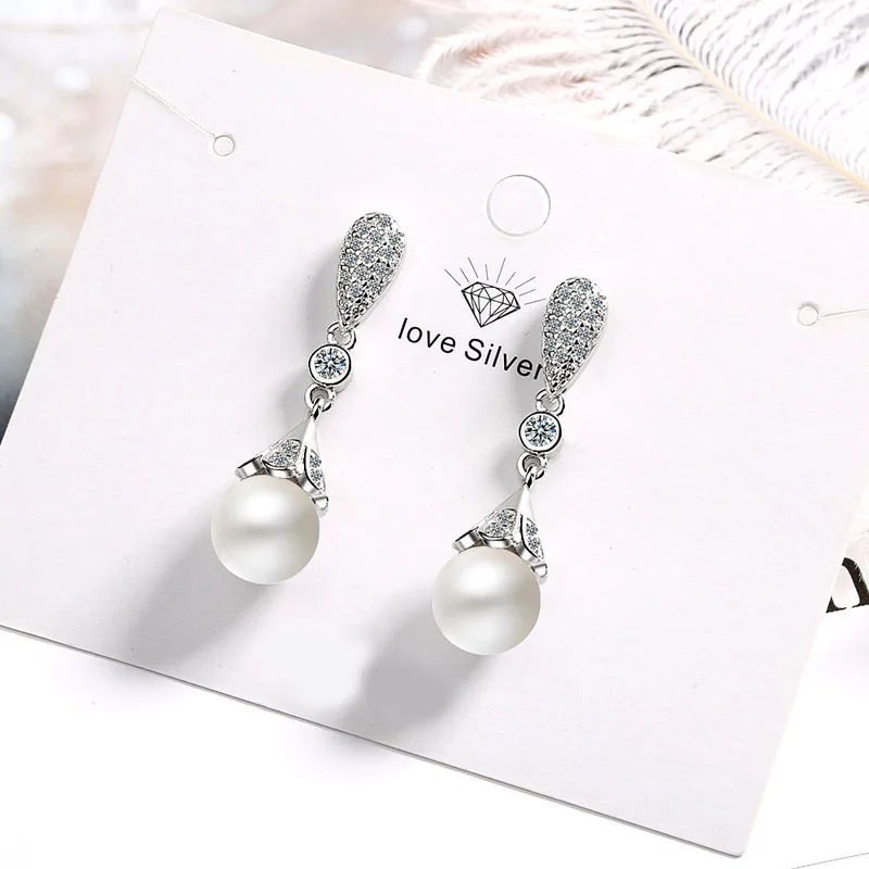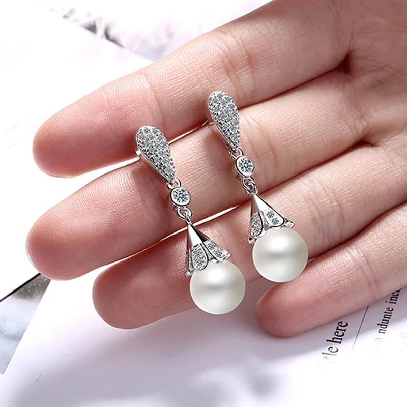 Женские серьги-подвески с жемчугом, серебро пробы