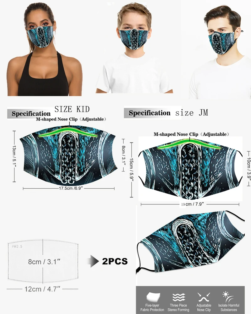 Многоразовая моющаяся Тканевая маска для косплея с 3D принтом маски...