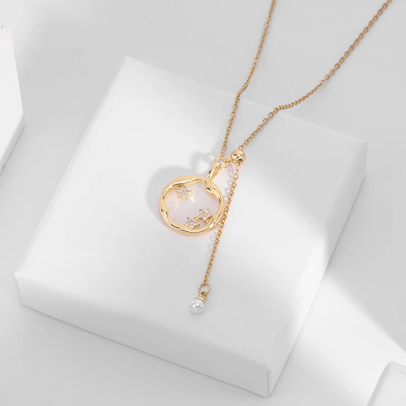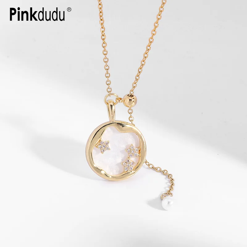 Pinkdudu звезда микро-инкрустированные Стразы ожерелье с подвеской простое ожерелье из титановой стали для ключицы жемчужное ожерелье Женские Ювелирные изделия PD513