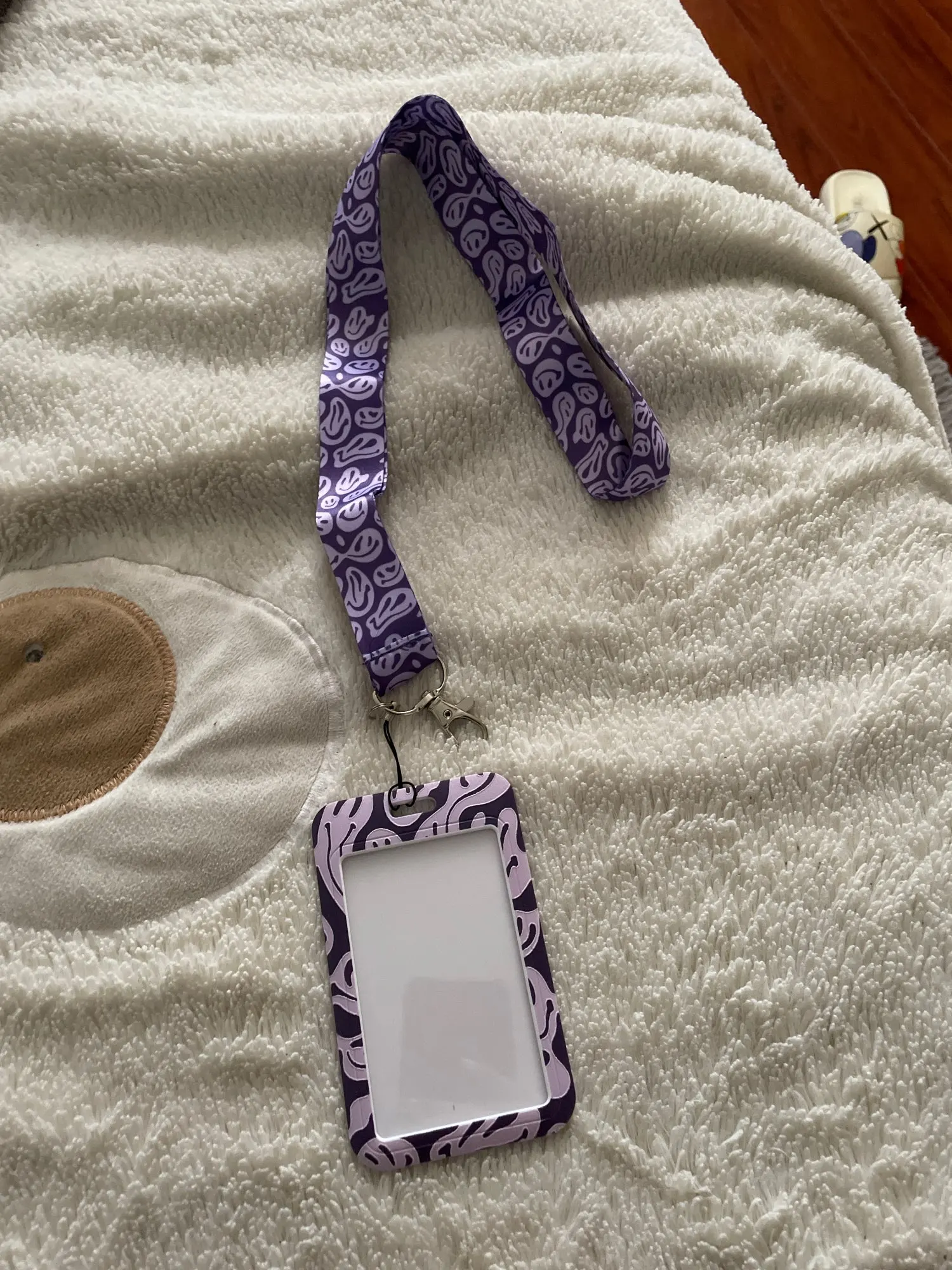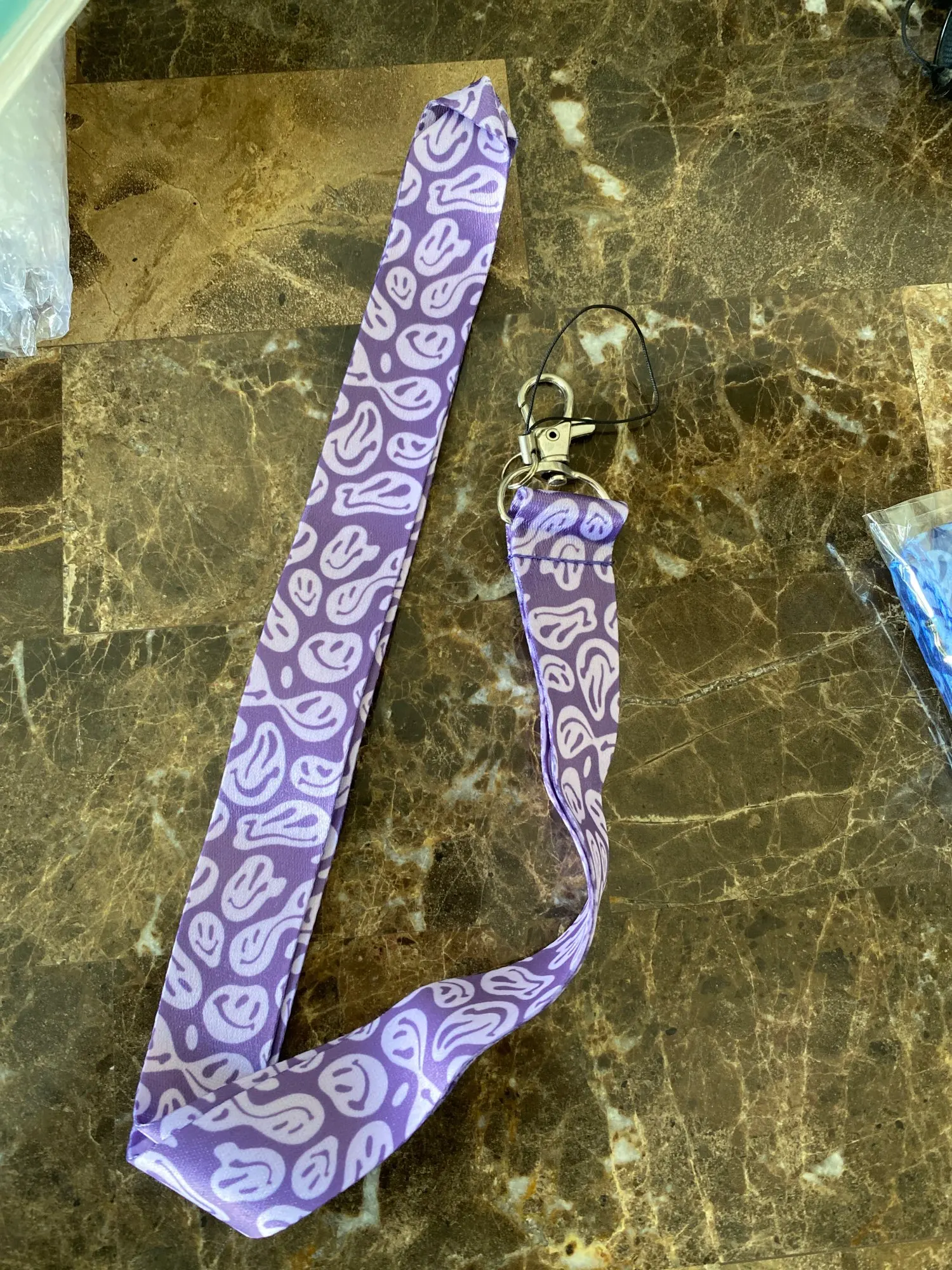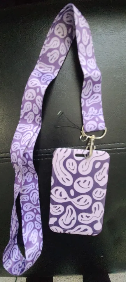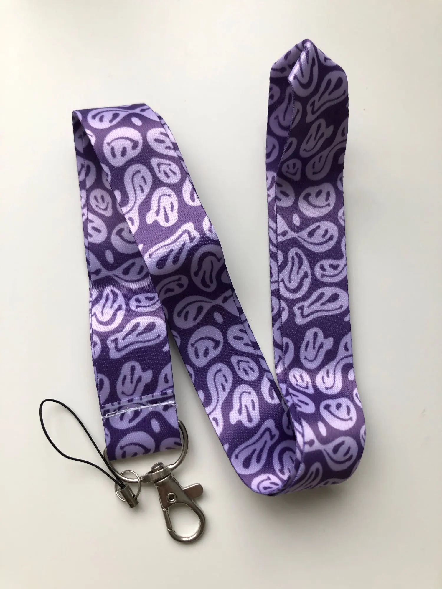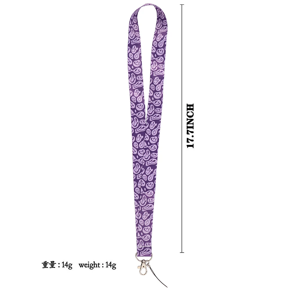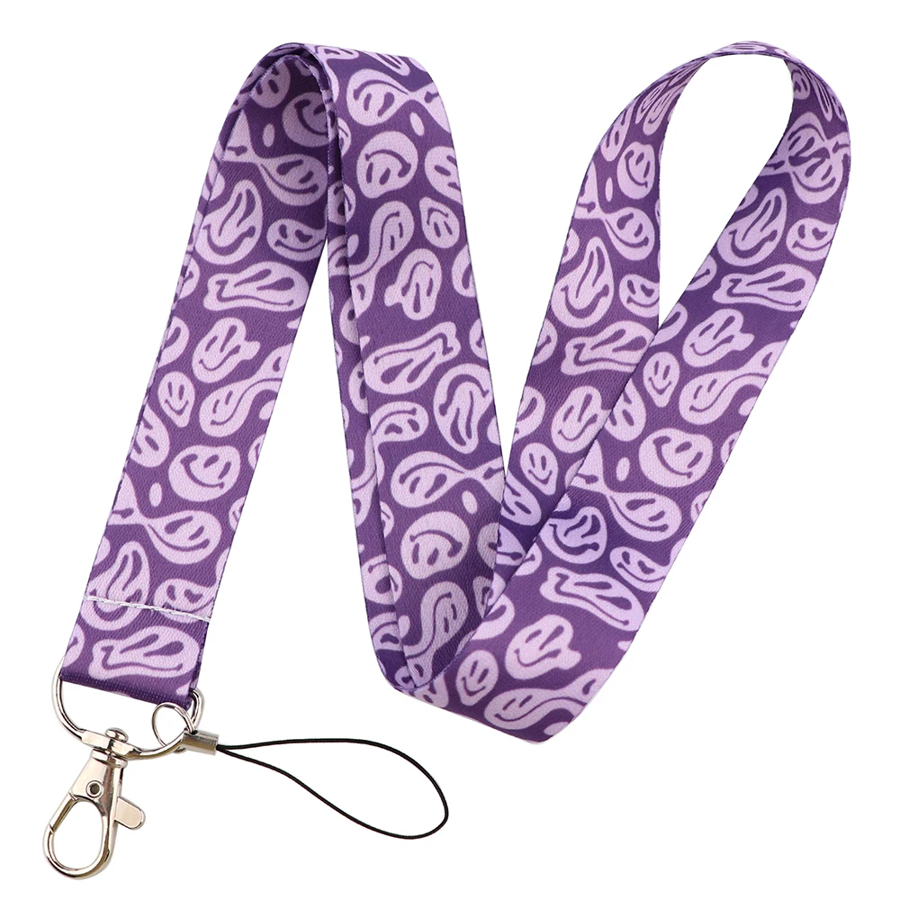 CB1167 фиолетовый шнурок в стиле Триппи с изображением лица для ключей, подвесная веревка, USB-держатель для ID-карты, брелок, ремешки для рукоделия