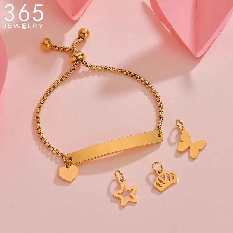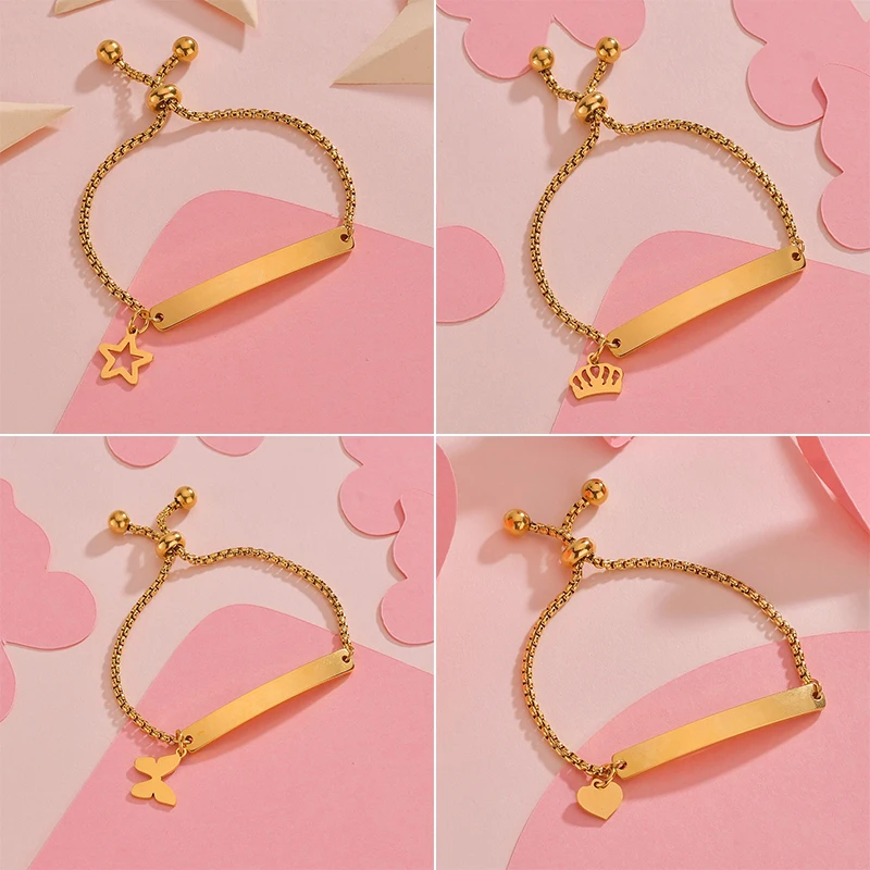 Браслеты-цепочки с именной табличкой на заказ, подвеска из нержавеющей стали в форме сердца и бабочки, бижутерия с гравировкой для женщин и детей, персонализированный подарок Вечерние