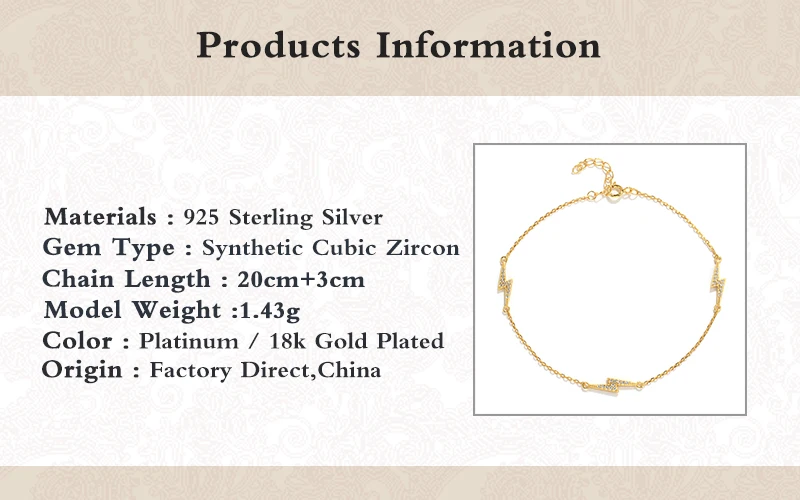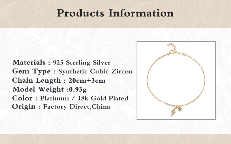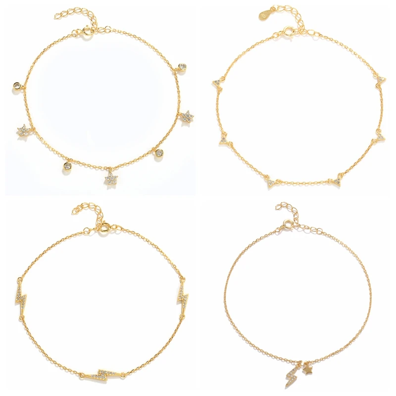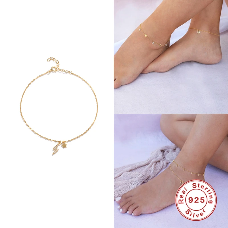 Анклет женский из серебра 925 пробы с молнией и звездами
