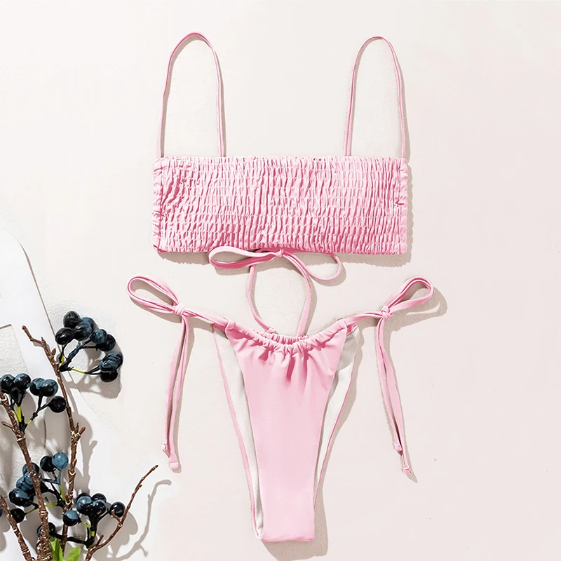 Бикини smock 2022, купальник-бандо для женщин, Бразильский купальный костюм, однотонный купальник, женский купальный костюм с высоким вырезом