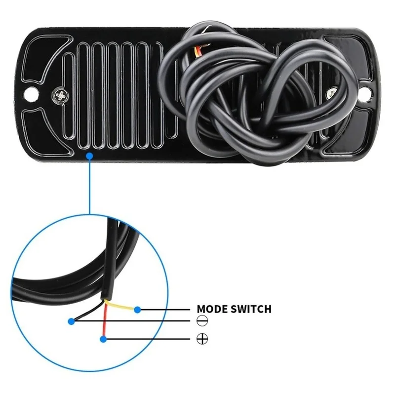3 провода подключения: черный для отрицательных, красный для положительных и желтый кабель подключения отрицательное Изменение мигающий режим.