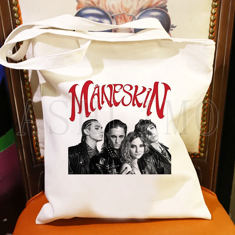 Готическая Сумка-тоут Maneskin, эко-сумка, хозяйственная Холщовая Сумка, женская сумка для девочек, дизайнерская сумка, магазин товаров с изящным принтом, сумки для покупок