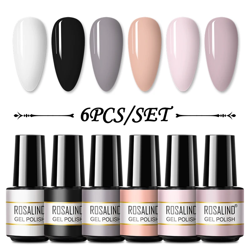 Набор гель-лаков ROSALIND для ногтей, 2/4/6 шт., лак для ногтей, гибридный лак для маникюра, матовый эффект, NoWipe Top Soak Off, УФ-лампа для ногтей