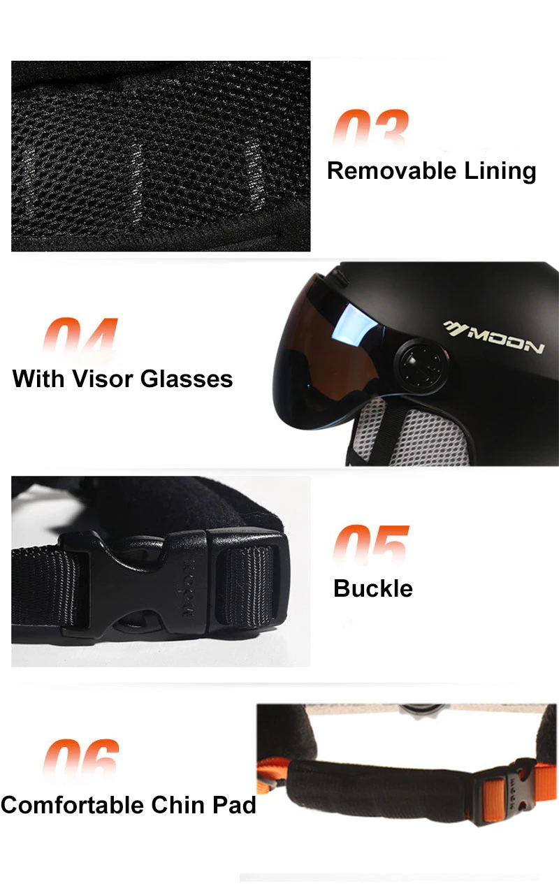 Высококачественные очки MOON для лыжного шлема, цельнолитой шлем из поликарбоната и пенополистирола, для уличного спорта, лыжного спорта, сноуборда, светлые товары унисекс