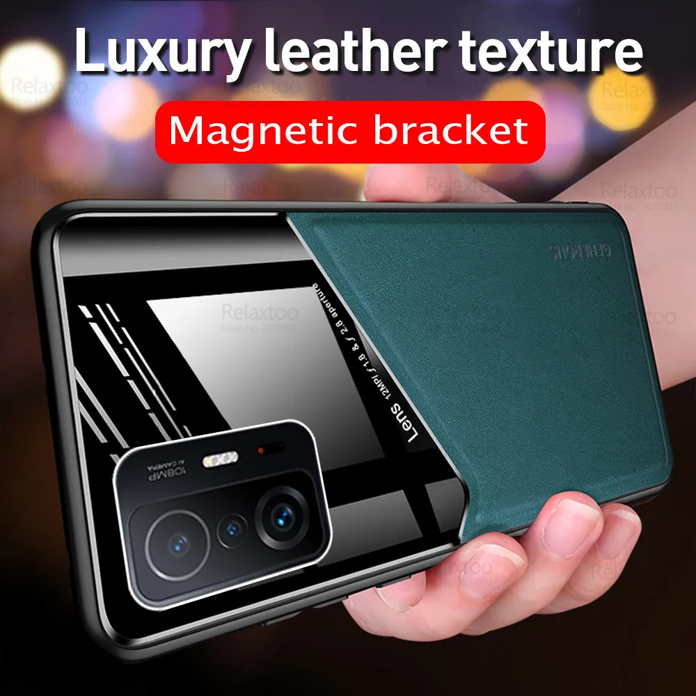 Для Xiaomi 11 T Pro Чехол автомобильный магнитный держатель кожаный чехол для Xiaomi11T Mi 11 T T11 Mi11T 11TPro акриловая задняя защитная крышка Fundas