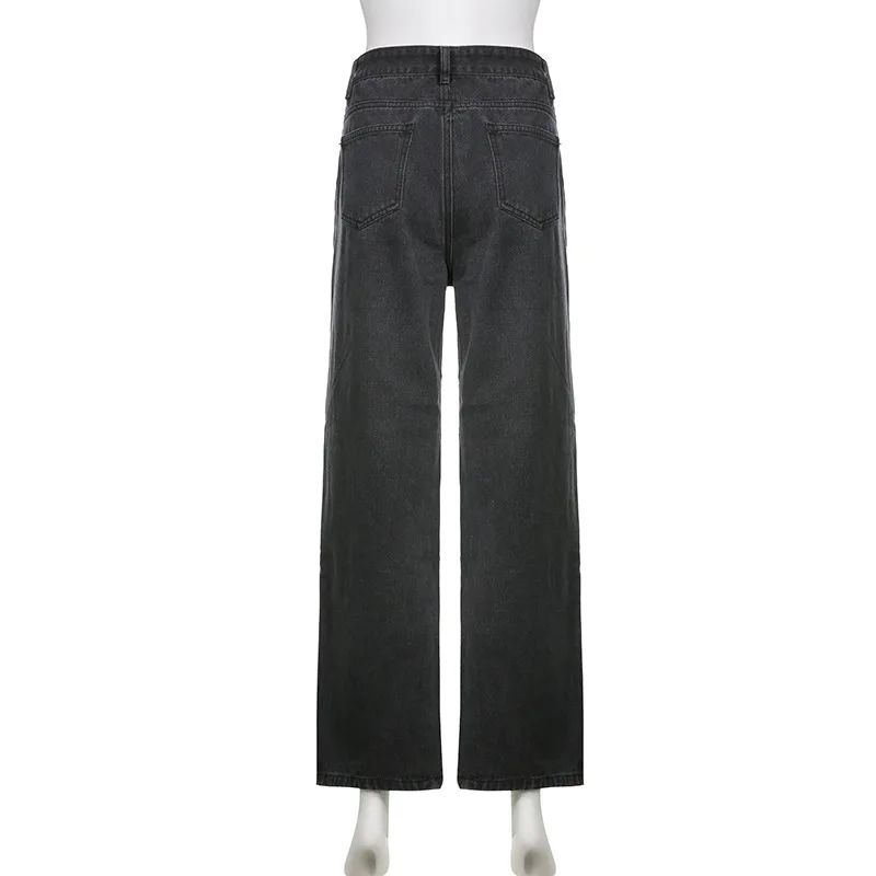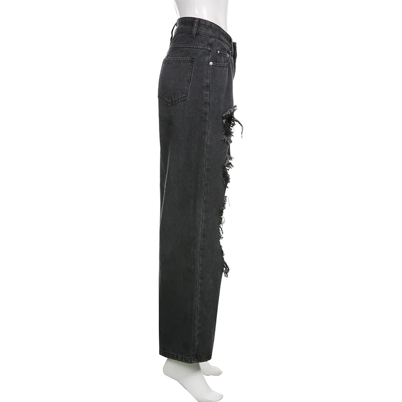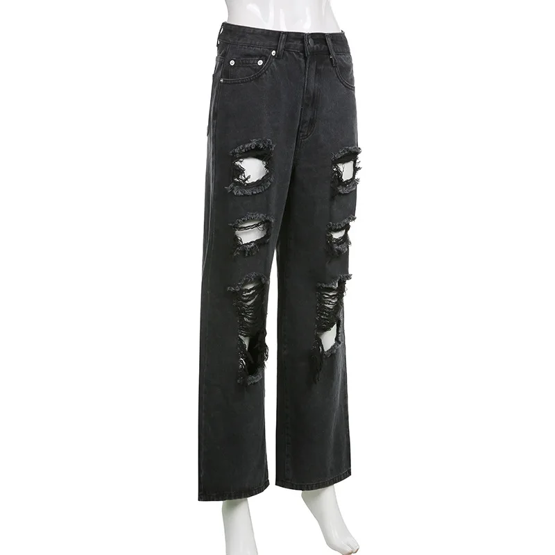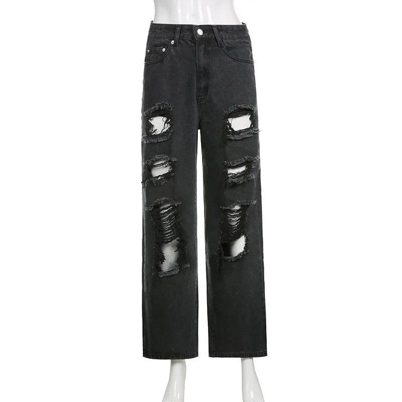 Женские джинсы с высокой талией Y2K, рваные мешковатые прямые джинсовые брюки, уличная одежда, джинсы, повседневные свободные брюки